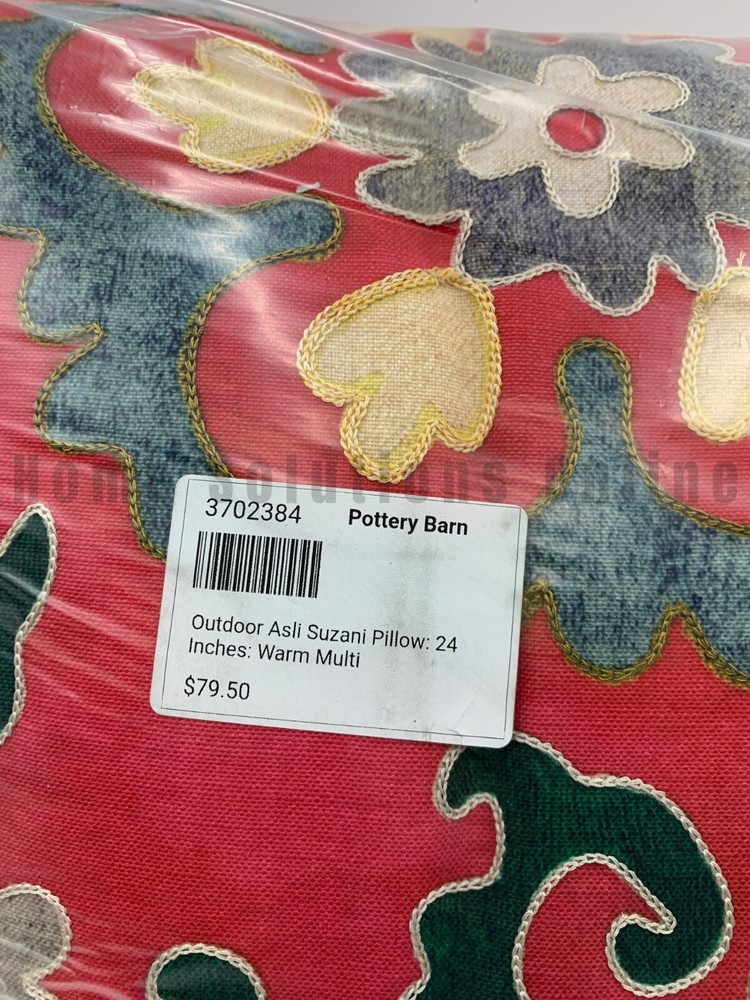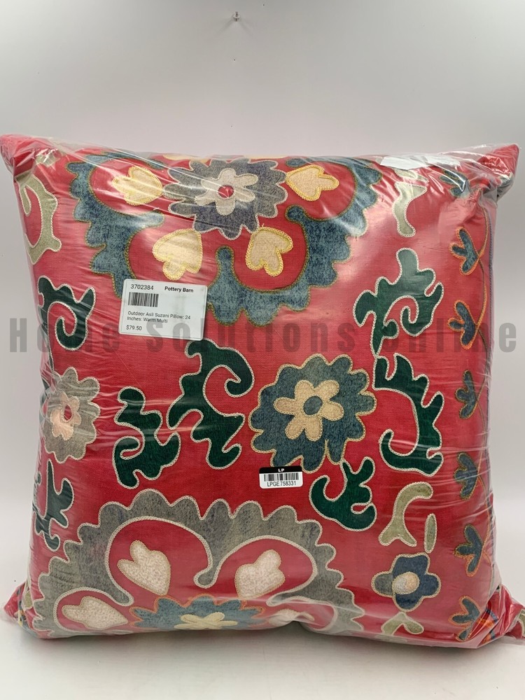 Pottery Barn Asli Suzani Embroidered Outdoor Pillow 24" Sq Red Multi Item is brand new! Auction includes 1 pillow. Pillow is made from 100% GRS certified recycled polyester verified by Interek 155529. Filled with 100% polyester. Can be used indoors or outdoors. Imported. Care Spot clean with a damp cloth. Blot to remove excess water. Air dry. Dimensions Overall: 24" sq