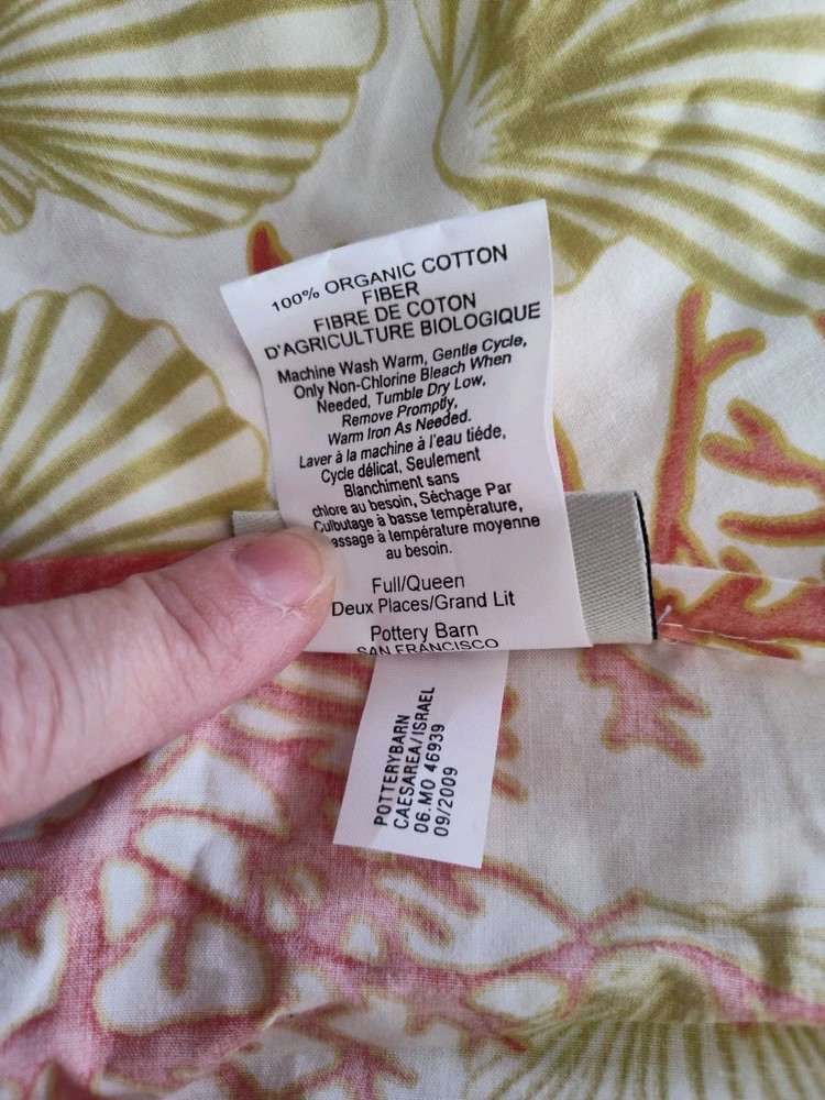 This Pottery Barn Atlantic Queen Duvet Cover and Euro Shams set features a beautiful beach pattern with shell and coral design. The set includes a full/queen duvet cover and two standard shams, all made of organic cotton material. The multicolor design is perfect for adding a touch of Florida beach vibes to your bedroom. The duvet cover and shams are machine washable and reversible, with a button closure type. Please note that this set does not include inserts for the covers. This set is perfect for those who love the beach and want to bring a piece of it into their home decor. No flaws found. Shipped from our Non smoking home. Please ask any questions before purchasing. Thanks for looking!