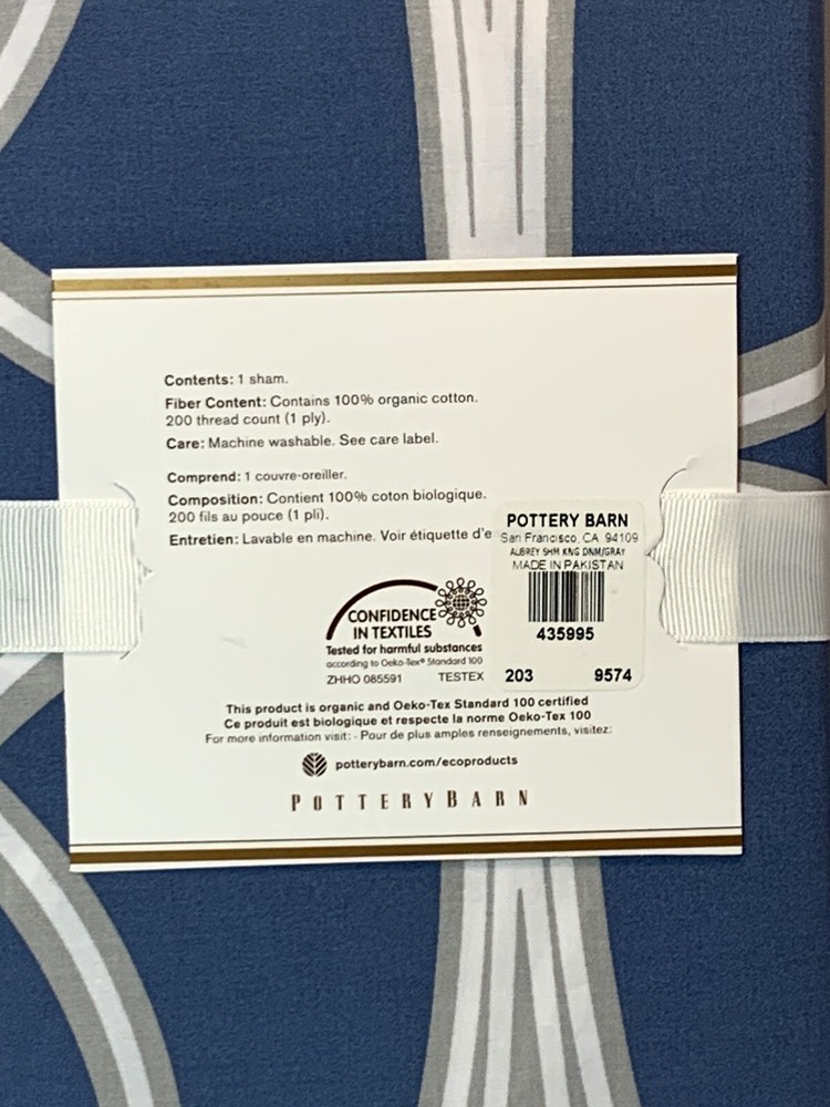Pottery Barn Aubrey Sham King 36x20 Organic Cotton NWT 200 Thread Count New With Tags QTY 1 Thank you for checking out my listing - Check out my store for more Treasures!...
