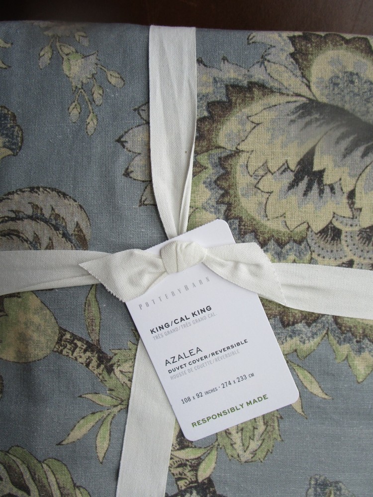 Up For Auction is = Pottery Barn Azalea Palempore Duvet Cover king + 2 Euro shams New w tag Material: Front is woven from 85% cotton and 15% linen. Back is woven from 100% cotton sheeting. Secure Design: Duvet features a hidden button closure with inner ties that keep insert in place; sham features an envelope closure. Smoke and pet free home.