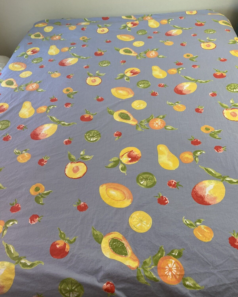 Pottery Barn KING DUVET Cover Blue with fruit. 82Wx88L inches Excellent condition. Shipping weight 4 lbs I pass my commercial shipping discount on to you. B20/6
