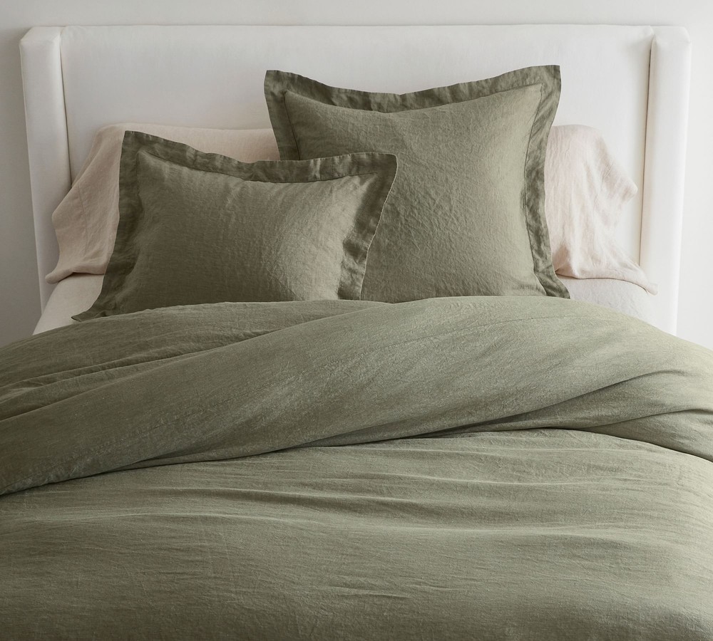Pottery Barn BELGIAN FLAX LINEN DUVET COVER only Size: Full/Queen: 88" l x 92" w Color: Loden ( pale Green ) New Arrivals NOTE: I take pictures to show the design, NOT SIZE! make sure you check the description carefully . Woven from the world’s finest Belgian flax, our linen bedding is prewashed for incredible softness – and only gets better with time. Lightly textured and cool to the touch, this natural-fiber fabric is prized for its durability, breathability, and lived-in look. It's proudly made at a Fair Trade Certified™ factory. Linen woven from 100% Belgian flax. Reverses to same. Duvet features a hidden button closure with inner ties that keep insert in place; sham features an envelope closure. STANDARD 100 by OEKO-TEX® Certified: WSI Certificate #: 14.HUS.42449: tested for 350+ harmful substances to keep you and your family safe from chemicals common to textile manufacturing. Made in a Fair Trade Certified™ factory, supporting fair and safe labor practices and empowering workers to invest in their communities. Workers receive extra funds for every product sold which are used for community projects chosen by workers. Shams sold in sets of 2 or 3. Duvet cover and insert sold separately. Machine wash. Imported. We combine shipping: USA Flat $12.99 shipping Each additional item $2.00 CANADA Flat $28.99 Each additional item $3.00 Worldwide Flat $38.99 Each additional item $5.00 Check out my other items! If you would like to combine shipping, please commit to buy what you would like, but do not pay for the items. Then, go to your cart and request a combined shipping invoice. Once you receive your invoice you can proceed to pay. If you're satisfied with your shopping experience, please leave me feedback promptly for a discount of 50% on shipping for your next purchase!! Subscribe to my store & get ONE time free shipping and updates on new arrivals!
