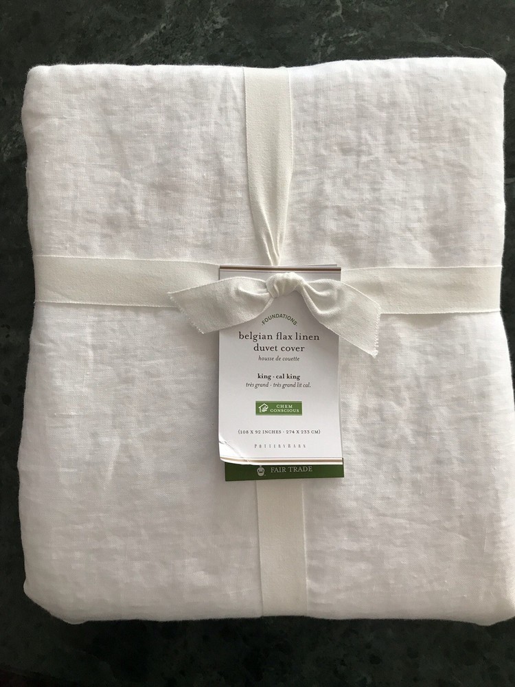 Pottery Barn BELGIAN FLAX LINEN DUVET COVER only Size: Full/Queen: 88" l x 92" w Color: White New Arrivals NOTE: I take pictures to show the design, NOT SIZE! make sure you check the description carefully . Woven from the world’s finest Belgian flax, our linen bedding is prewashed for incredible softness – and only gets better with time. Lightly textured and cool to the touch, this natural-fiber fabric is prized for its durability, breathability, and lived-in look. It's proudly made at a Fair Trade Certified™ factory. Linen woven from 100% Belgian flax. Reverses to same. Duvet features a hidden button closure with inner ties that keep insert in place; sham features an envelope closure. STANDARD 100 by OEKO-TEX® Certified: WSI Certificate #: 14.HUS.42449: tested for 350+ harmful substances to keep you and your family safe from chemicals common to textile manufacturing. Made in a Fair Trade Certified™ factory, supporting fair and safe labor practices and empowering workers to invest in their communities. Workers receive extra funds for every product sold which are used for community projects chosen by workers. Shams sold in sets of 2 or 3. Duvet cover and insert sold separately. Machine wash. Imported. We combine shipping: USA Flat $12.99 shipping Each additional item $2.00 CANADA Flat $28.99 Each additional item $3.00 Worldwide Flat $32.99 Each additional item $5.00 Check out my other items! If you would like to combine shipping, please commit to buy what you would like, but do not pay for the items. Then, go to your cart and request a combined shipping invoice. Once you receive your invoice you can proceed to pay. If you're satisfied with your shopping experience, please leave me feedback promptly for a discount of 50% on shipping for your next purchase!! Subscribe to my store & get ONE time free shipping and updates on new arrivals!