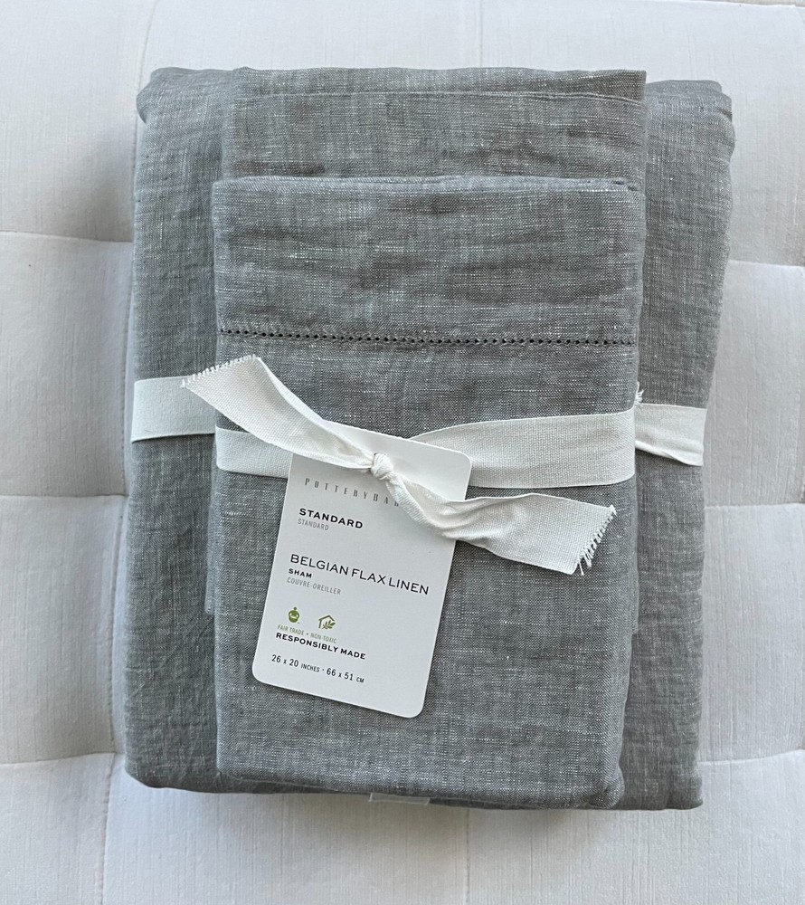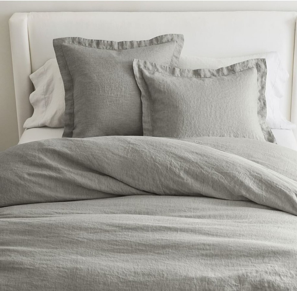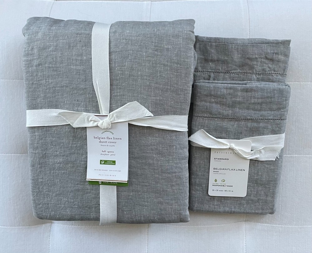 Pottery Barn BELGIAN FLAX LINEN Duvet Cover Full/Queen & 2 Standard Shams~Flagstone New with tags PB describes as: Woven from the world’s finest Belgian flax, our linen bedding is prewashed for incredible softness—and only gets better with time. Lightly textured and cool to the touch, this natural-fiber fabric is prized for its durability, breathability and lived-in look. Our Belgian flax linen bedding is proudly made at a Fair Trade Certified™ factory. Linen woven from 100% Belgian flax. Specially washed for a super soft hand feel. Ideal for warm or cool temperatures. STANDARD 100 by OEKO-TEX® certified. Tested in an independent lab and verified to be safe from over 350 harmful substances. Fair Trade Certified™. The purchase of this product helps ensure fair and safe labor practices, improve livelihoods, and empower workers to invest in their communities. Duvet features a hidden button closure with inner ties that keep insert in place; sham features an envelope closure. Machine wash. Imported. Full/Queen Duvet: 88" l x 92" w Standard Shams: 20" w x 26" l Pet & Smoke Free Ships within 1 business day Thank you!