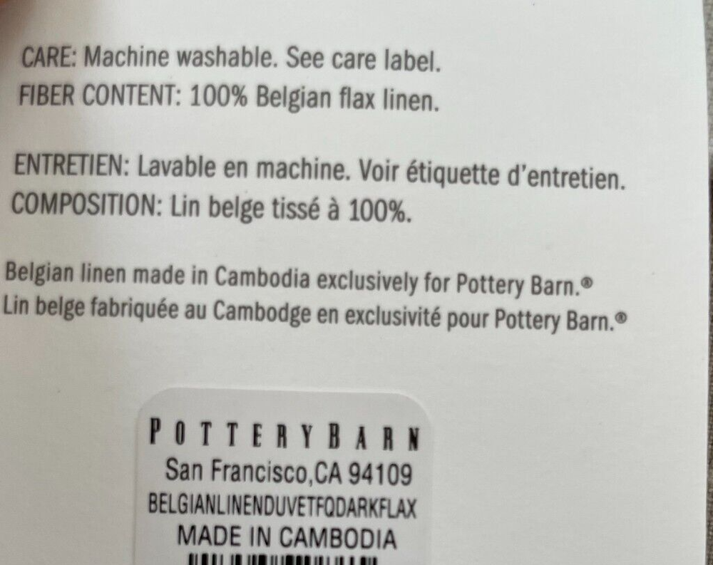 Pottery Barn BELGIAN FLAX LINEN Duvet Full/Queen & 2 Euro Shams ~Dark Flax New with tags PB describes as: Linen woven from 100% Belgian flax. Prewashed for a supersoft hand feel. Ideal for warm or cool temperatures. STANDARD 100 by OEKO-TEX® certified. Tested in an independent lab and verified to be safe from over 350 harmful substances. Fair Trade Certified™. Duvet features a hidden button closure with inner ties that keep insert in place; sham features an envelope closure. Machine wash. Imported. Pet & Smoke Free Shipped within 1 business day Thank you!