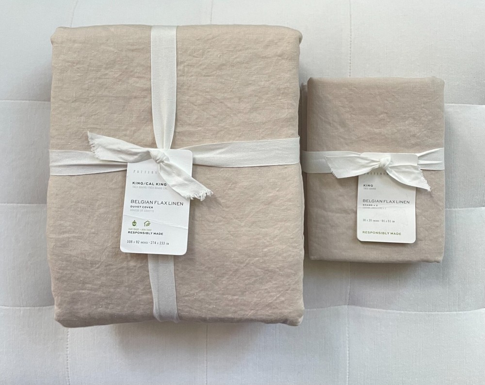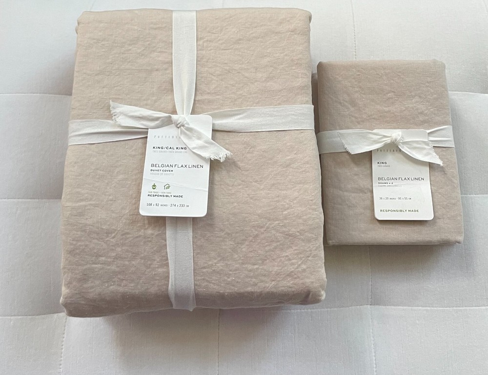 Pottery Barn BELGIAN FLAX LINEN Duvet Cover King/California King & Two King Shams ~Rosewater New with tags PB describes as: Woven from the world’s finest Belgian flax, our linen bedding is prewashed for incredible softness—and only gets better with time. Lightly textured and cool to the touch, this natural-fiber fabric is prized for its durability, breathability and lived-in look. Our Belgian flax linen bedding is proudly made at a Fair Trade Certified™ factory. Linen woven from 100% Belgian flax. Specially washed for a supersoft hand feel. Ideal for warm or cool temperatures. STANDARD 100 by OEKO-TEX® certified. Tested in an independent lab and verified to be safe from over 350 harmful substances. Fair Trade Certified™. The purchase of this product helps ensure fair and safe labor practices, improve livelihoods, and empower workers to invest in their communities. Duvet features a hidden button closure with inner ties that keep insert in place; sham features an envelope closure. King/California King: 92" l x 108" w King Sham: 20" w x 36" l Pet & Smoke Free Ships within 1 business day Thank you!