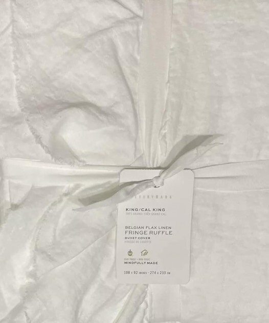 Pottery Barn BELGIAN FLAX LINEN FRINGE RUFFLE King/Cali King Duvet Cover & 3 Euro Shams ~White New with tags PB describes as: Woven from the world’s finest Belgian flax, our linen bedding is prewashed for incredible softness—and only gets better with time. Lightly textured and cool to the touch, this natural-fiber fabric is prized for its durability, breathability and lived-in look. Our Belgian flax linen bedding is proudly made at a Fair Trade Certified™ factory. Linen woven from 100% Belgian flax; reverse is 65% linen and 35% cotton blend. Breathable Belgian flax linen is ideal for warm or cool temperatures, and its durability lets you love it for years. Specially washed for a super soft hand feel. Designed with romantic ruffle edges. STANDARD 100 by OEKO-TEX® certified. Tested in an independent lab and verified to be safe from over 350 harmful substances. Fair Trade Certified™. The purchase of this product helps ensure fair and safe labor practices, improve livelihoods, and empower workers to invest in their communities. Duvet features a hidden button closure with inner ties that keep insert in place; sham features an envelope closure. Insert sold separately. Machine wash. Imported. King/Cal. King Duvet: 92" l x 108" w Euro Shams: 26" sq Retail $586.00 Pet & Smoke Free Ships within 1 business day Thank you!