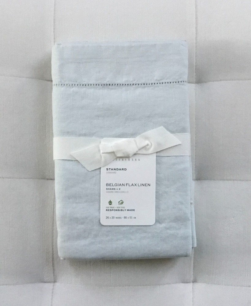 Pottery Barn BELGIAN FLAX LINEN Standard Shams ~Set of Two~Blue Frost New with tags Two Standard shams included in this listing 100% Belgian Flax Linen Envelope closure Machine wash Pet & Smoke Free S...