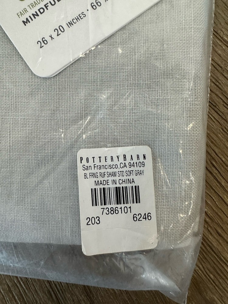 You are purchasing one Pottery Barn BELGIAN FLAX LINEN fringe ruffle Sham Size is standard color is soft gray new with tags,