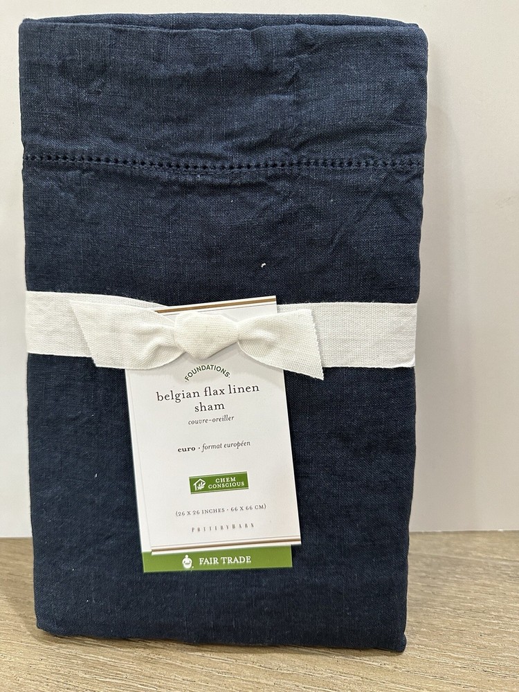 You are purchasing one Pottery Barn BELGIAN FLAX LINEN Hemstitch Sham Size is king color is midnight blue new, in package....