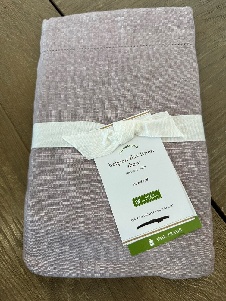 You are purchasing one Pottery Barn BELGIAN FLAX LINEN Hemstitch Sham Size is standard color is a light purple/lavender purple new with tags, paper tag has a black line through the pb name