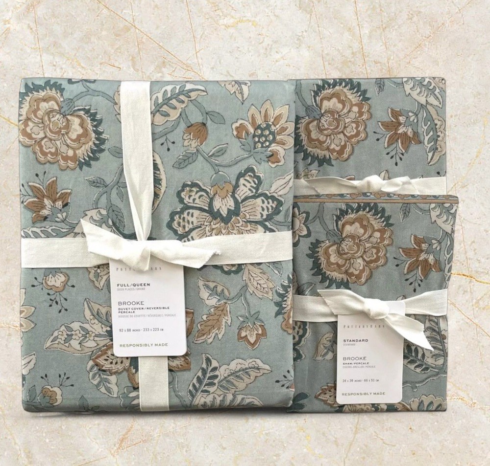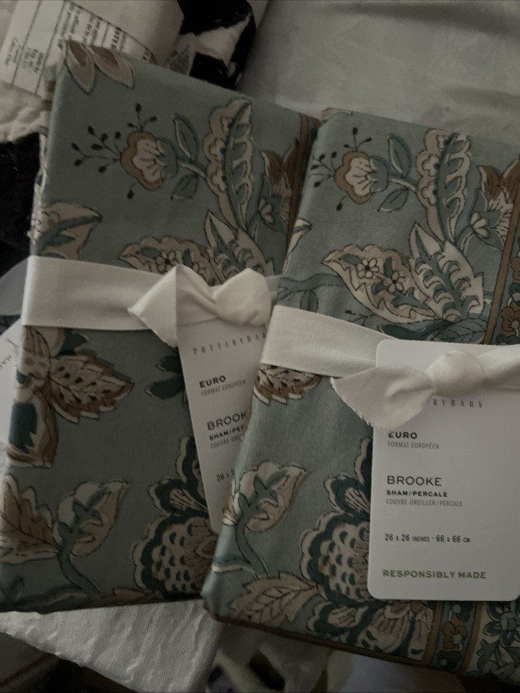 New Pottery Barn BROOKE FLORAL PRINTED Duvet Full Queen & 2 Euro Shams Multi Add a touch of nature and luxury to your bedroom with this beautiful three-piece duvet cover set from Pottery Barn. The set includes a full/queen sized duvet cover and two Euro sized shams, all featuring a vibrant floral printed pattern. The modern style and rectangular shape complement each other perfectly, making this set a great addition to any bedroom decor. Crafted from 100% cotton and imported from other countries, this duvet cover set is machine washable and reversible for your convenience. The button closure type and high thread count of 200 make it durable and comfortable to use. The set is perfect for those who love flowers, nature, and luxury.
