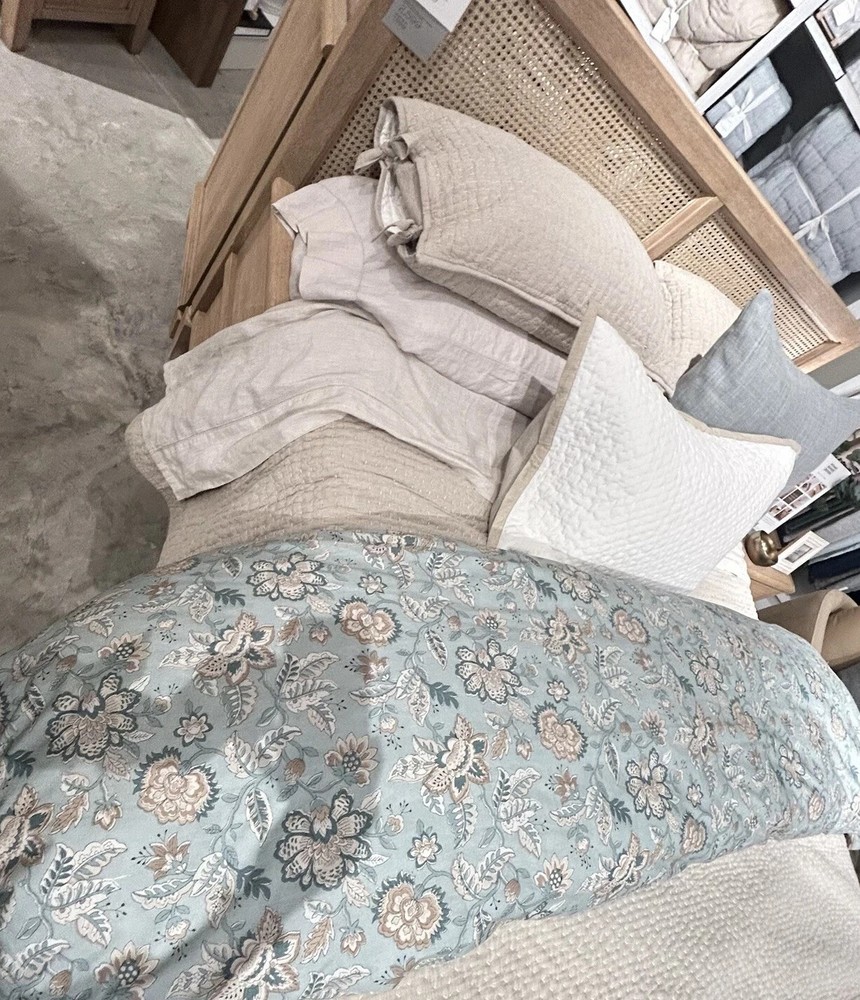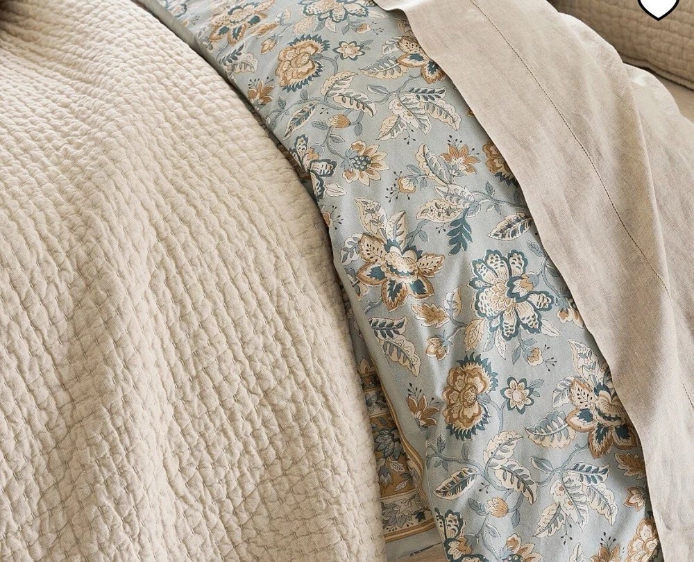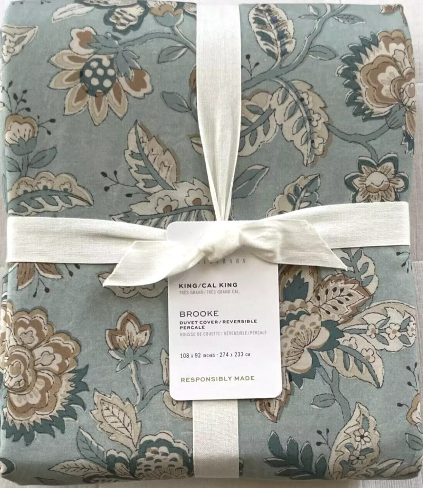 The Pottery Barn Brooke Floral Printed Duvet King/Cal King set includes a duvet cover and two king shams, all made of 100% cotton with a beautiful floral pattern in multicolor. The set features a modern style with a nature and luxury theme, perfect for adding a touch of elegance to any bedroom. The duvet cover has a rectangular shape and measures 92" in length and 108" in width, while the shams measure 20" x 36". This three-piece set is machine washable and reversible, making it a convenient and stylish addition to your home decor. Retail: $ 399