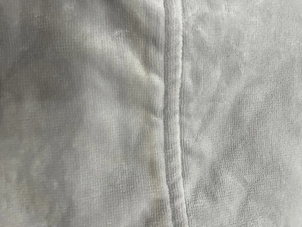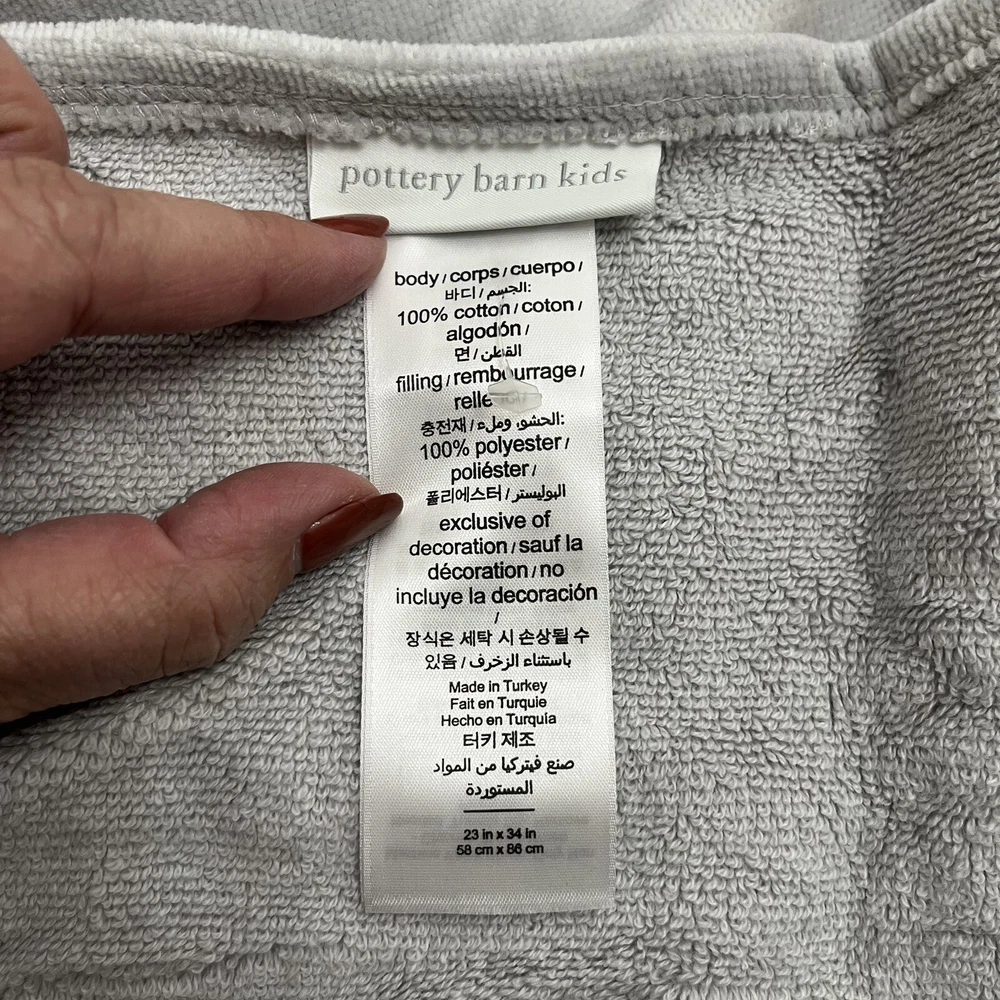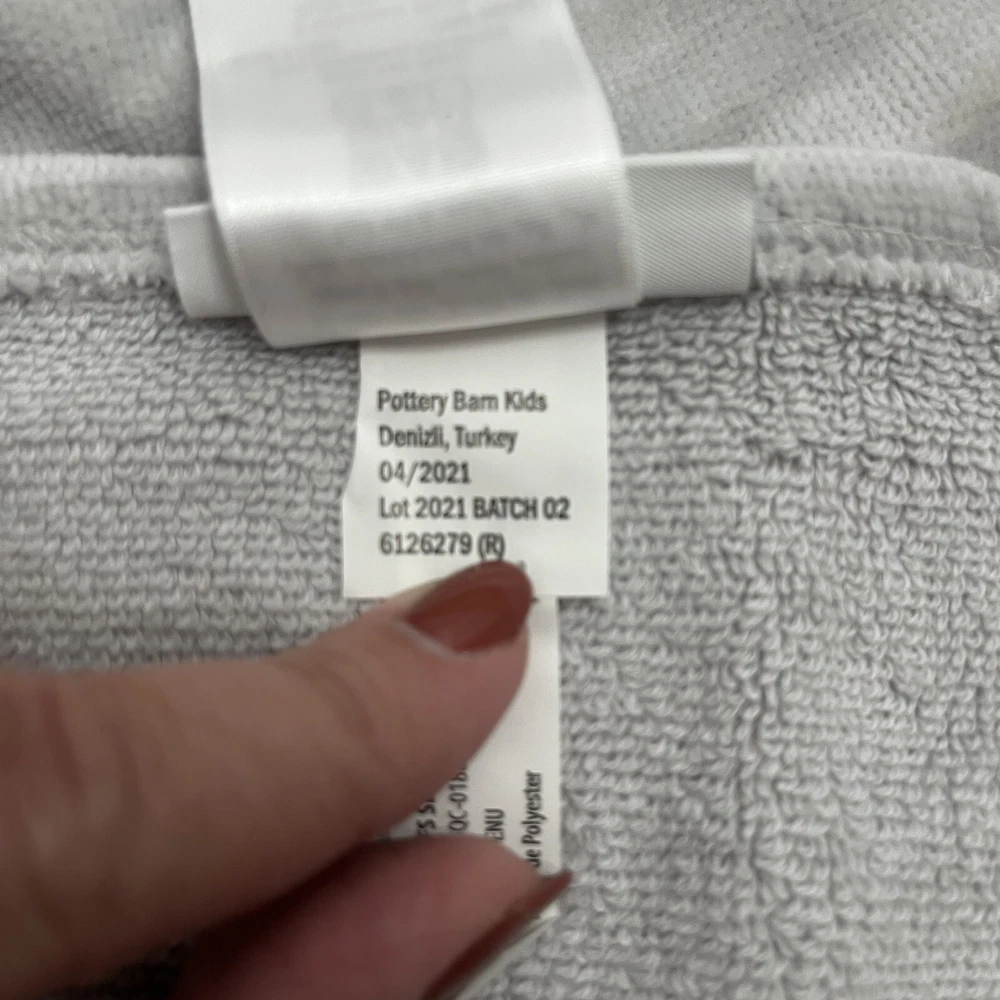 This hooded towel is new with tags but has a few spots where it appears discolored (would probably come out in the wash). See pictures for any flaws. CLOTHING AND FABRIC ITEMS: All clothing and fabric items have been steam cleaned and/or washed per eBay standards.
