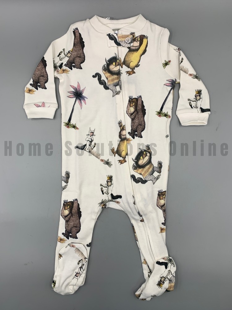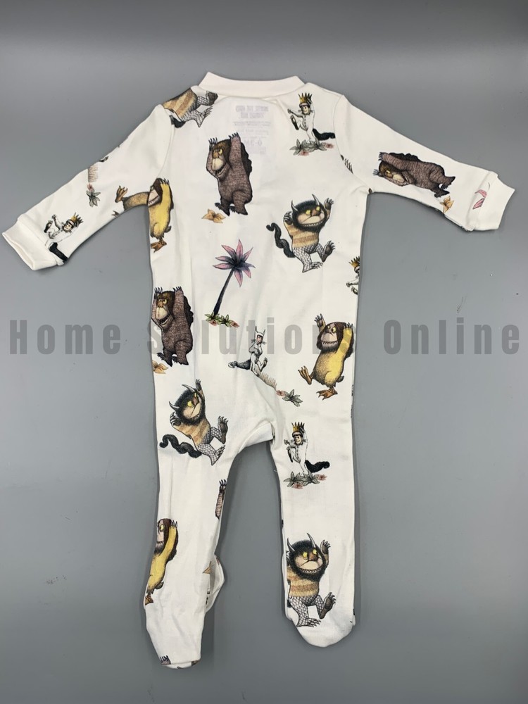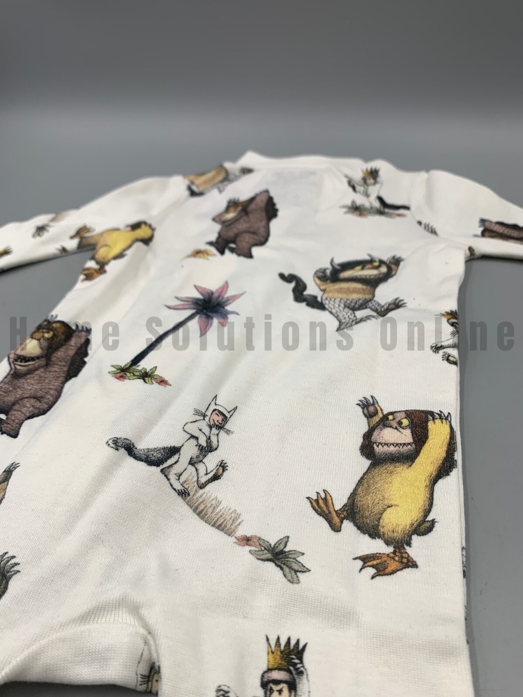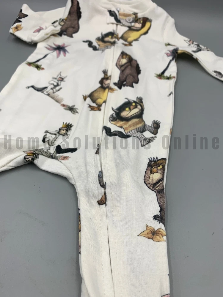Pottery Barn Baby Where The Wild Things Are Organic Nursery Pajama ATTENTION: Please know that when creating these, Pottery Barn used individual patterns. All pieces have Where The Wild Things Are character pattern, but no two pieces are alike. The pictures above are meant to give a general idea of what the pajamas look like. Item is brand new Auction includes: 1 pajama set DETAILS THAT MATTER: One-piece features rib collar and cuffs. Zipper and snap closures make it easy to put on and take off. Made of 100% organic cotton knit. A fine cotton knit gives the fabric a soft finish while providing durability and ultra breathability. The 12-18 and 18-24 month sized pajamas are footless, making it easier for your baby to walk. OEKO-TEX® STANDARD 100: tested for 1000+ harmful substances to keep you and your family safe. 21.HUS.86232 HOHENSTEIN HTTI. WHERE THE WILD THINGS ARE and all related characters and elements © WBEI. (S24) DIMENSIONS: Size 0-3 Months: 23" tall; 12 lbs Size 3-6 Months: 23-25" tall; 12-17 lbs Size 6-9 Months: 25-27" tall; 17-18 lbs Size 9-12 Months: 27-29" tall; 18-22 lbs Size 12-18 Months: 29-31" tall; 22-26 lbs Size 18-24 Months: 31-33" tall; 26-30 lbs CARE: Wash before first wear, turn inside out. Machine wash in warm water; gentle cycle. Use only non-chlorine bleach when needed. Tumble dry on low heat; remove promptly. Warm iron as needed.