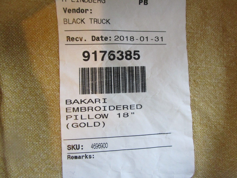 Up For Auction is- Pottery Barn Bakari embroidered gold pillow cover 18 photo shoot sample does not include pillow insert Smoke and pet free home.
