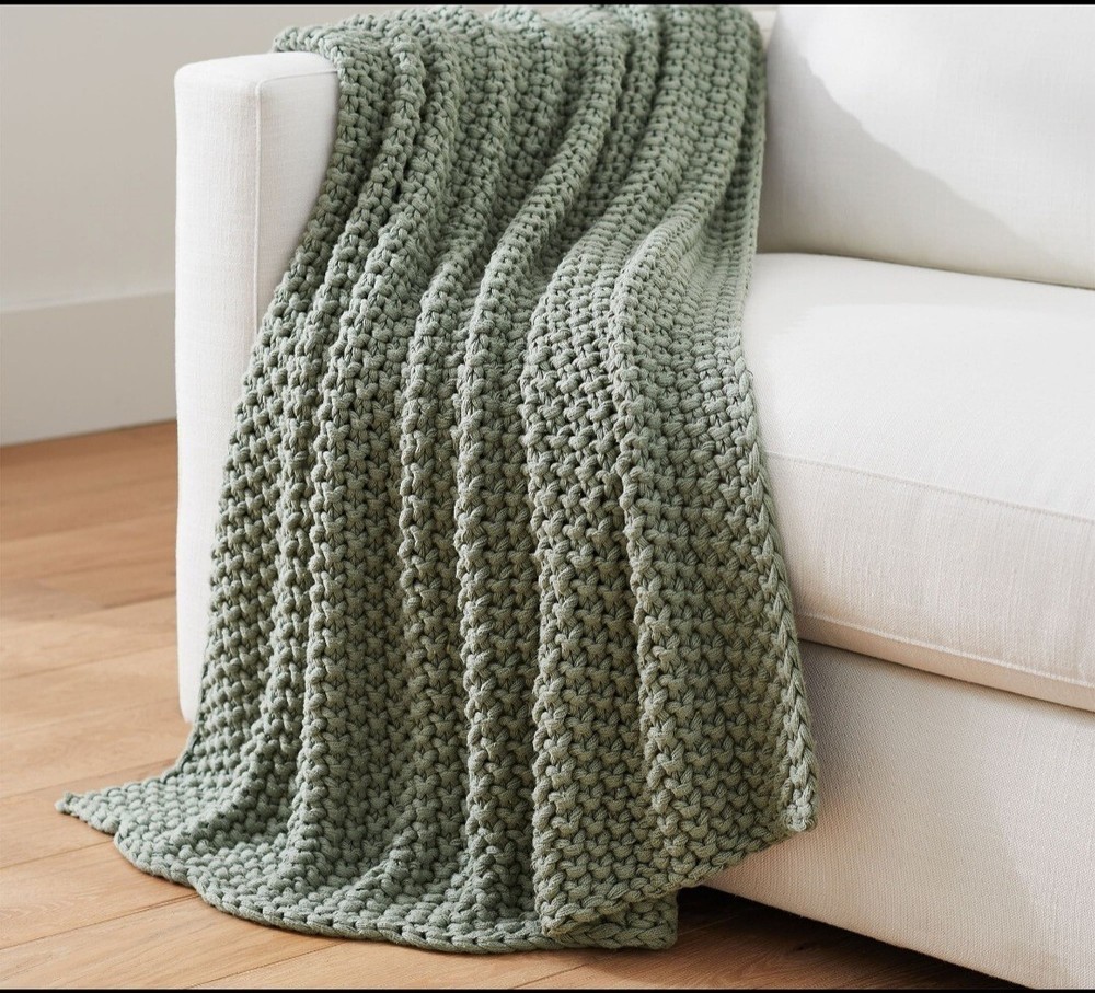Love how soft and cozy this knitted throw is—perfect for curling up on the couch or adding a chic touch to my bedroom. The eucalyptus color is calming and goes with everything. Great quality, just what I’d expect from Pottery Barn!