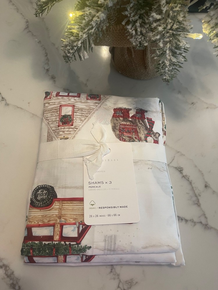 Add a festive touch to your bedroom with these Pottery Barn Beary Christmas Pillow Shams. The set of three Euro size pillow shams are made of 100% cotton and feature a charming bear design, perfect for the holiday season. Measuring 24 inches in length and width. Bring a bit of holiday cheer to your bedroom with these adorable pillow shams! Listing is for 3 Euro Shams only, duvet and sheet set listed separately.