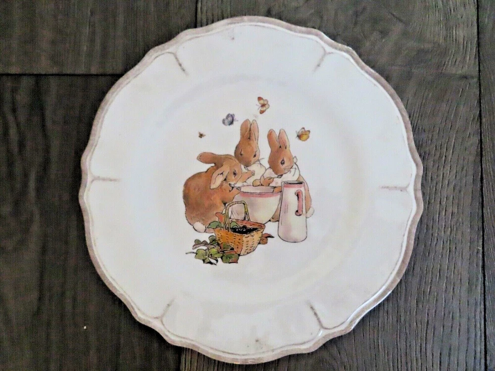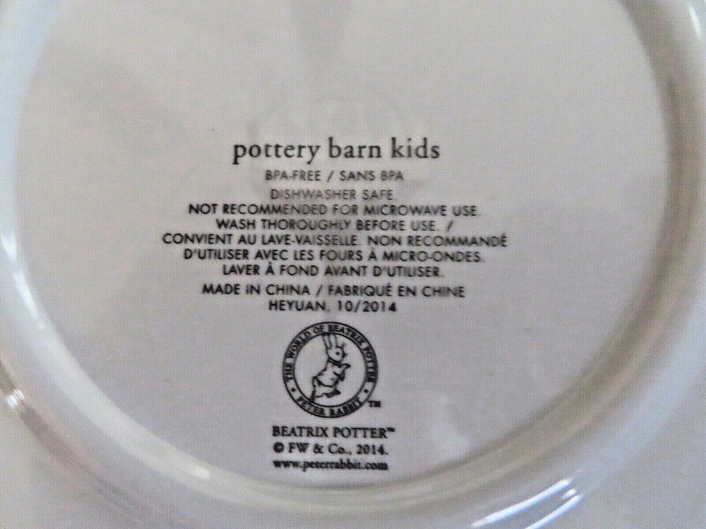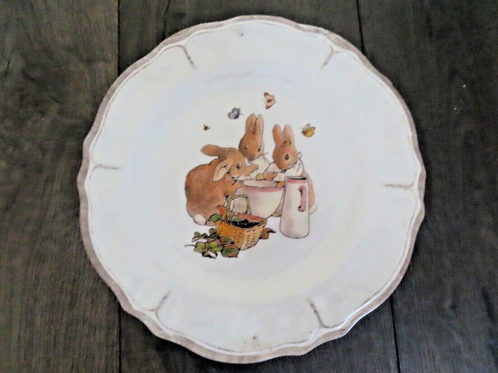 Pottery Barn Beatrix Potter Peter Rabbit Kids Easter Dinner Plates SET OF 6 DINNER PLATES DIAMETER : 11" MADE OF MELAMINE EACH PLATE HAS THE SAME DESIGN ON IT - THESE ARE VERY HARD TO FIND NEW ALL THE...