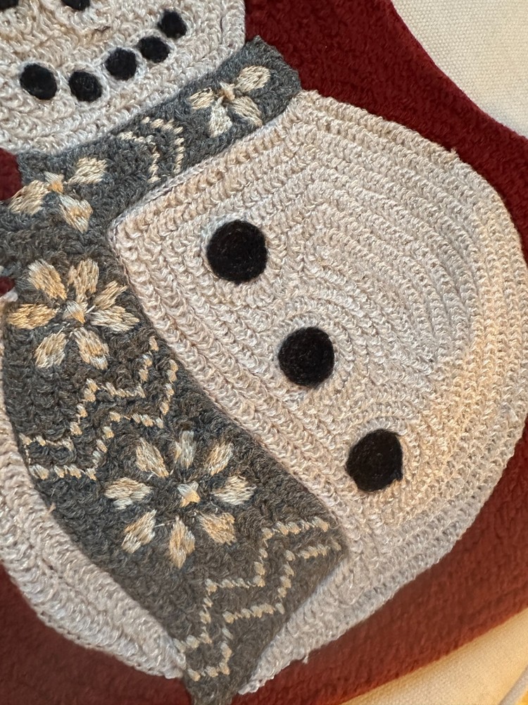 Pottery Barn Beautiful Crewel Stitched Christmas Stocking Snowman New with tags
