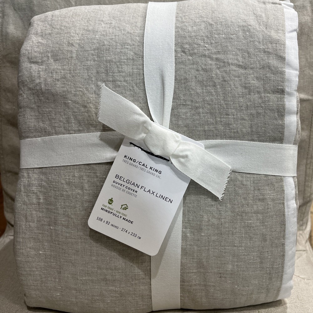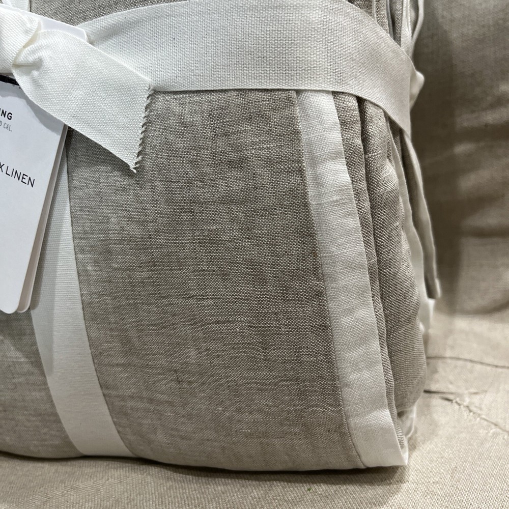 You are purchasing One Pottery Barn Belgian linen contrast trim King Duvet color is flax front and back with a white trim around the edges Size is King/cal king new with tags in package. ALL PB paper tags have a black marker line through them to prevent returns.