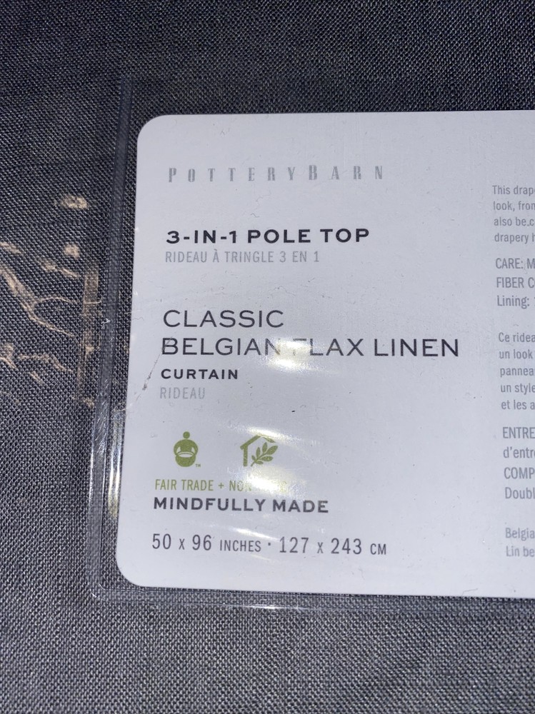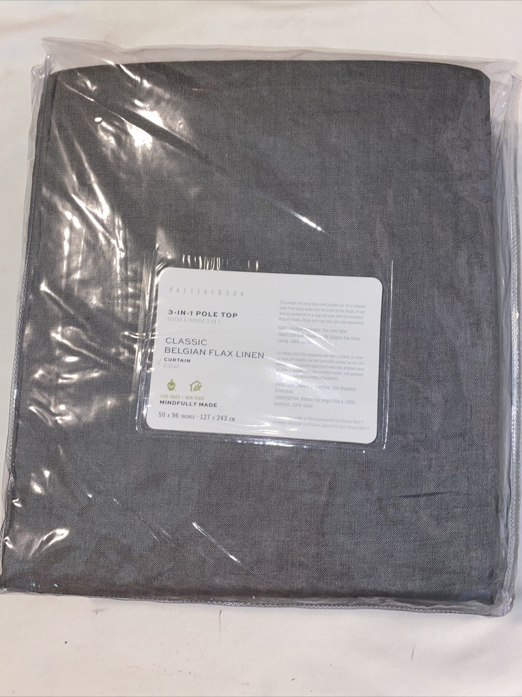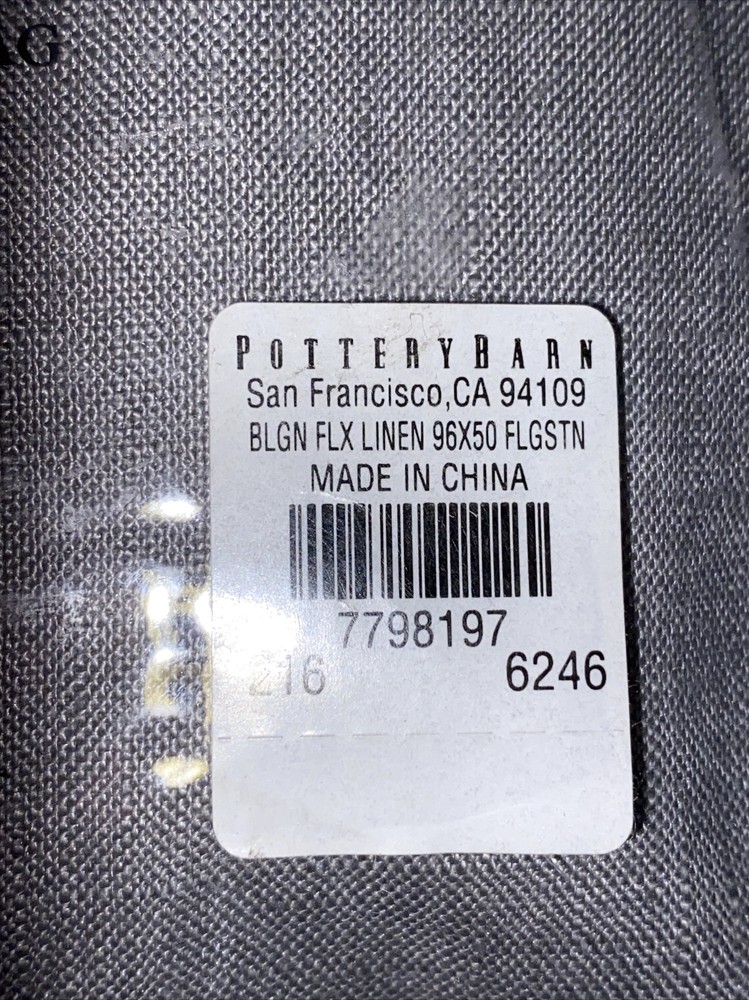Pottery Barn Belgian Flax Linen 50x96 COTTON LINED Drape Flagstone Gray New with tags in original packaging