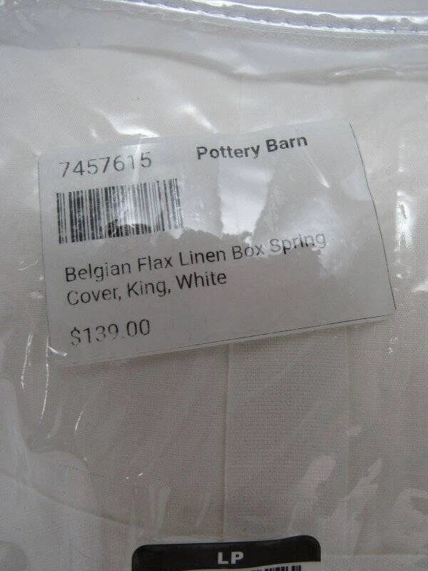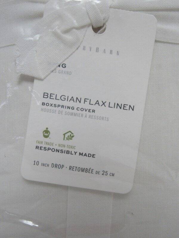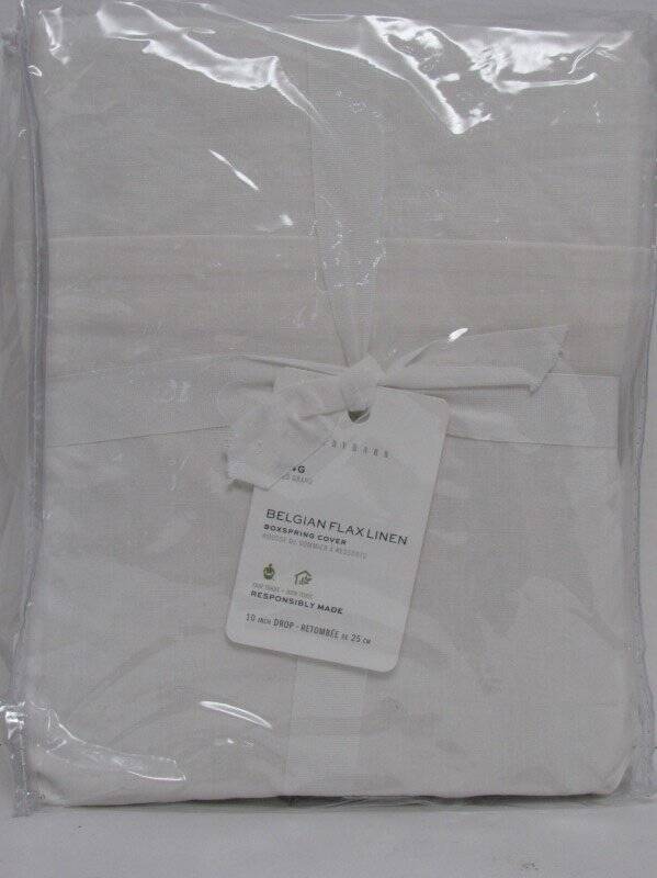 Pottery Barn Belgian Flax Linen Box Spring Cover, 10" Drop White Color NWT Pottery Barn Belgian Flax Linen Box Spring Cover, New with tags... 1 Box Spring Cover----78" w x 80"l----10" drop----25 cm Color--White Keep your box spring looking clean and your bed well dressed with our crisp Belgian Flax Linen Box Spring Cover. PRODUCT DETAILS Knitted of 100% cotton. Linen woven from 100% Belgian flax. 100% cotton decking. Prewashed for a supersoft hand feel. Ideal for warm or cool temperatures. STANDARD 100 by OEKO-TEX® Certified: WSI Certificate #: 14.HUS.42449: tested for 400+ harmful substances to keep you and your family safe from chemicals common to textile manufacturing. Imported. CARE Machine wash in sold water; gentle cycle. Use only non-chlorine bleach when needed. Tumble dry on low heat; remove promptly. Warm iron as needed. See my other listings for more great items! Please read our return policy before you purchase: We take pride in our business, and we strive to do our best. We purchase brand new items and we do our best to give accurate descriptions and photos. If you have any questions about an item, please contact us through eBay prior to your purchase. We try our best to resolve any issues as fast as possible. Please contact us right away if there are any issues with your purchase. Item must be returned within 30 days of the original delivery date. When we receive the returned item, inspect it, and it is found to be in the same condition that we shipped it in (brand new, unused and in the original packaging) You will immediately receive your refund. Returns that have any signs of use or handling will NOT be accepted and no refund will be given. Thank you! Please read our return policy before you purchase: We take pride in our business, and we strive to do our best. We purchase brand new items and we do our best to give accurate descriptions and photos. If you have any questions about an item, please contact us through eBay prior to your purchase. We try our best to resolve any issues as fast as possible. Please contact us right away if there are any issues with your purchase. Item must be returned within 30 days of the original delivery date. When we receive the returned item, inspect it, and it is found to be in the same condition that we shipped it in (brand new, unused and in the original packaging) You will immediately receive your refund. Returns that have any signs of use or handling will NOT be accepted and no refund will be given. Thank you! Feedback: We strive to give you the best service. If you have any issues regarding your item, please contact us right away . Customer satisfaction is our priority. We accept MasterCard, Visa, Discover, Paypal and American Express, securely and conveniently via eBay Managed Payments. We will use the address listed on your eBay account...so please make sure it is correct. WE WILL SHIP TO CONFIRMED EBAY ADDRESSES ONLY!! DO NOT send money via PayPal if your address is not confirmed...we will not be able to accept it. We provide fast shipping! Your item will be shipped within 1-3 business days via UPS, USPS priority mail or Fed-Ex. We reserve the right to choose shipping company. They can NOT deliver to PO boxes, so please provide us with a physical street address. Once your item is shipped you will receive an email with your tracking number. We are HAPPY to combine shipping on items that can be combined. Please email us for shipping rates to HI and AK. Signature at delivery is required for all items over $250. All items must also be shipped to the address on your eBay account.. We are enrolled in eBay's Global Shipping Program . Only countries approved in eBay's Global shipping can receive deliveries from us. Other Items Feedback Contact txzj pxzj432 txzj-11 txzj-4 txzj1 txzj115