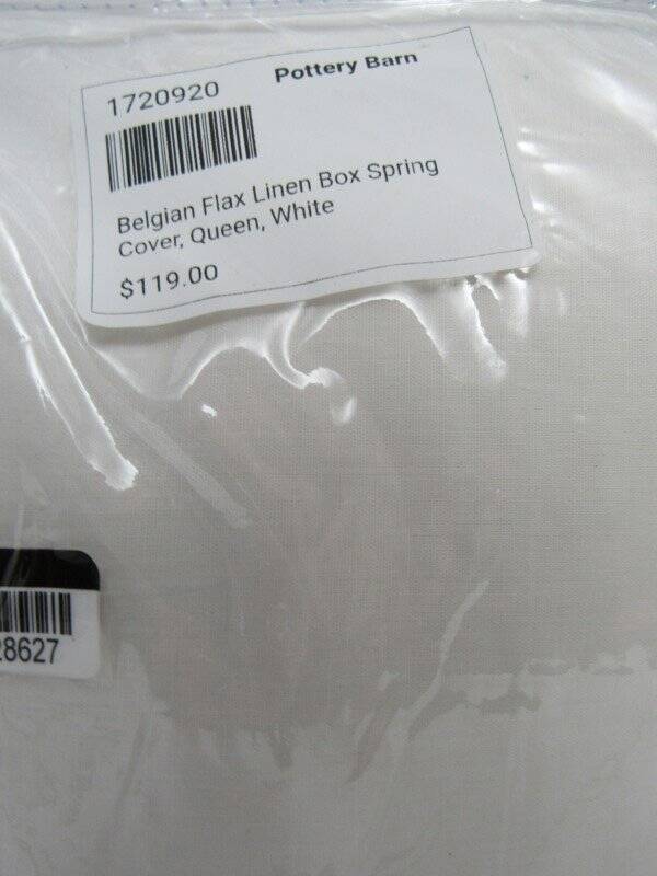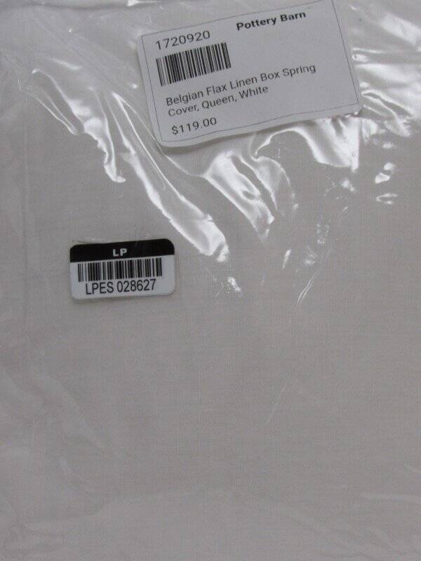 Pottery Barn Belgian Flax Linen Box Spring Cover, Queen Size White New Pottery Barn Belgian Flax Linen Box Spring Cover, Open box----New "New without cardboard hang tags, has Pottery Barn sticker tag. ( See pictures )" 1 Queen Box spring cover---60" wide x 80" long Color--White Keep your box spring looking clean and your bed well dressed with our crisp Belgian Flax Linen Box Spring Cover. PRODUCT DETAILS CONSTRUCTION Linen woven from 100% Belgian flax. 100% cotton decking. Prewashed for a supersoft hand feel. Ideal for warm or cool temperatures. STANDARD 100 by OEKO-TEX® Certified: WSI Certificate #: 14.HUS.42449: tested for 400+ harmful substances to keep you and your family safe from chemicals common to textile manufacturing. Imported. CARE Machine wash in sold water; gentle cycle. Use only non-chlorine bleach when needed. Tumble dry on low heat; remove promptly. Warm iron as needed. Dimensions QUEEN: 60" w x 80" l See my other listings for more great items! Please read our return policy before you purchase: We take pride in our business, and we strive to do our best. We purchase brand new items and we do our best to give accurate descriptions and photos. If you have any questions about an item, please contact us through eBay prior to your purchase. We try our best to resolve any issues as fast as possible. Please contact us right away if there are any issues with your purchase. Item must be returned within 30 days of the original delivery date. When we receive the returned item, inspect it, and it is found to be in the same condition that we shipped it in (brand new, unused and in the original packaging) You will immediately receive your refund. Returns that have any signs of use or handling will NOT be accepted and no refund will be given. Thank you! Please read our return policy before you purchase: We take pride in our business, and we strive to do our best. We purchase brand new items and we do our best to give accurate descriptions and photos. If you have any questions about an item, please contact us through eBay prior to your purchase. We try our best to resolve any issues as fast as possible. Please contact us right away if there are any issues with your purchase. Item must be returned within 30 days of the original delivery date. When we receive the returned item, inspect it, and it is found to be in the same condition that we shipped it in (brand new, unused and in the original packaging) You will immediately receive your refund. Returns that have any signs of use or handling will NOT be accepted and no refund will be given. Thank you! Feedback: We strive to give you the best service. If you have any issues regarding your item, please contact us right away . Customer satisfaction is our priority. We accept MasterCard, Visa, Discover, Paypal and American Express, securely and conveniently via eBay Managed Payments. We will use the address listed on your eBay account...so please make sure it is correct. WE WILL SHIP TO CONFIRMED EBAY ADDRESSES ONLY!! DO NOT send money via PayPal if your address is not confirmed...we will not be able to accept it. We provide fast shipping! Your item will be shipped within 1-3 business days via UPS, USPS priority mail or Fed-Ex. We reserve the right to choose shipping company. They can NOT deliver to PO boxes, so please provide us with a physical street address. Once your item is shipped you will receive an email with your tracking number. We are HAPPY to combine shipping on items that can be combined. Please email us for shipping rates to HI and AK. Signature at delivery is required for all items over $250. All items must also be shipped to the address on your eBay account.. We are enrolled in eBay's Global Shipping Program . Only countries approved in eBay's Global shipping can receive deliveries from us. Other Items Feedback Contact txzj pxzj432 txzj-11 txzj-4 txzj1 txzj115