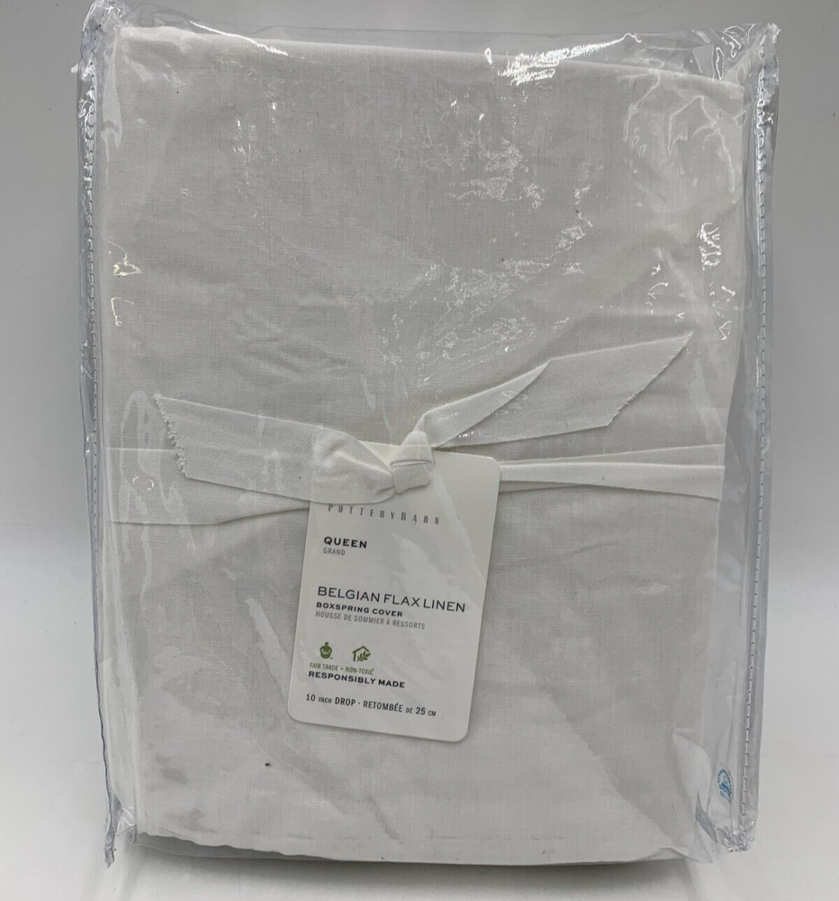 Pottery Barn Belgian Flax Linen Box Spring Cover w/ Decking Item is brand new Auction includes: 1 box spring cover PRODUCT DETAILS CONSTRUCTION: Linen woven from 100% Belgian flax. 100% cotton decking. Prewashed for a supersoft hand feel. Ideal for warm or cool temperatures. STANDARD 100 by OEKO-TEX® Certified: WSI Certificate #: 14.HUS.42449: tested for 400+ harmful substances to keep you and your family safe from chemicals common to textile manufacturing. Imported. CARE: Machine wash in sold water; gentle cycle. Use only non-chlorine bleach when needed. Tumble dry on low heat; remove promptly. Warm iron as needed. DIMENSIONS: TWIN: 39" w x 76" l FULL 54" w x 76" l QUEEN : 60" w x 80" l KING: 78" w x 80" l CAL. KING: 72" w x 84" l
