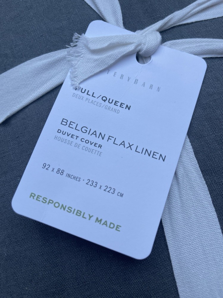 Pottery Barn Belgian Flax Linen Double Flange Duvet Cover - Full/Queen Charcoal PB says, " With a relaxed look and luxurious hand, linen is a fabric we turn to again and again. Ours is beautifully woven from the world's finest Belgian flax, prewashed for superior softness that only gets better with time. Double flanges with raw edges bring a casual sensibility to the design, while the natural, breathable fibers make this bedding perfect for year-round layering. Natural fibers, like our flax linen, offer beautiful, unique variations in color ensuring your bedding is one of a kind." Condition: New with tags Size: Full / Queen F / Q Color: Charcoal (gray) 12.99 shipping to the U.S. Thank you for your interest!