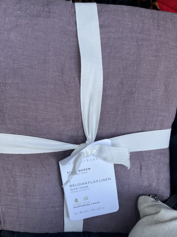 This duvet is a dream! The Belgian flax linen is luxuriously soft and breathable, perfect for cozy year-round comfort. The elegant double flange detailing adds a refined touch, and the rich fig color brings warmth to any bedroom. Being brand new with tags and from a smoke-free, pet-free home makes it an even better find. So happy with this purchase!
