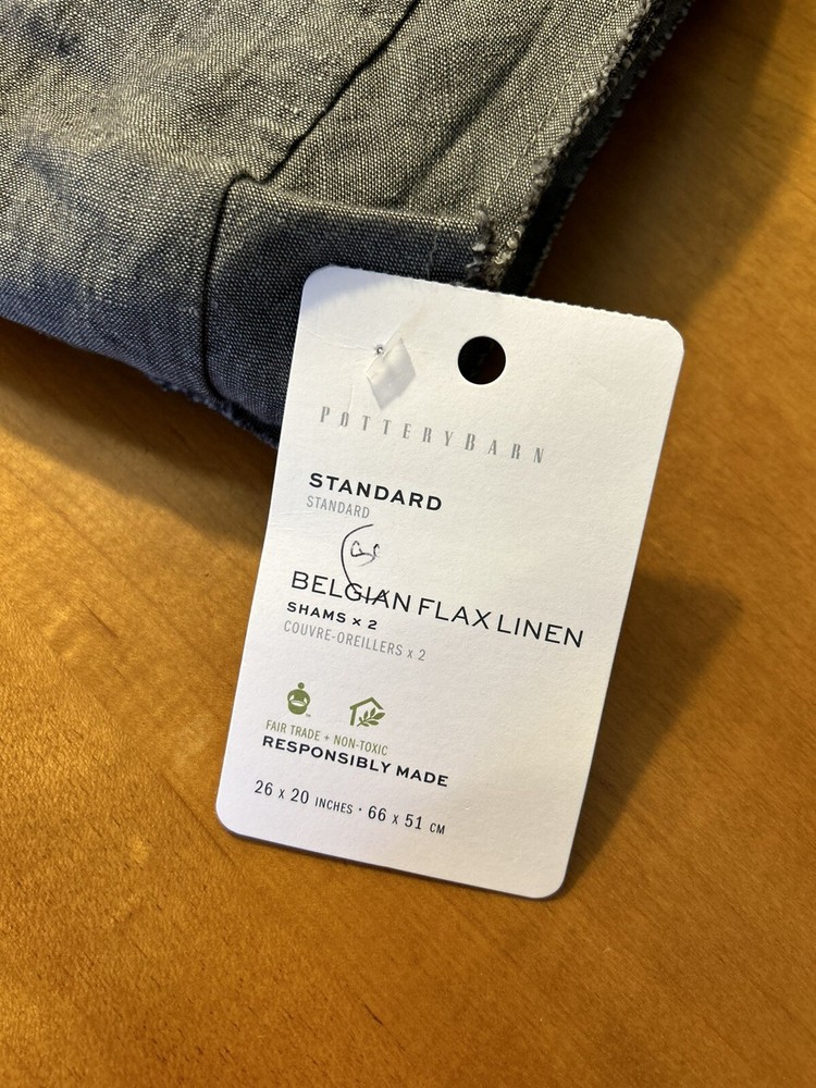 Pottery Barn Belgian Flax Linen Double Flange STANDARD Shams (2) Dark Forest OB New with tags / Open box - The shams are wrinkled due to them not being in their original packaging. Set of two standard shams in the color dark forest - Double flange
