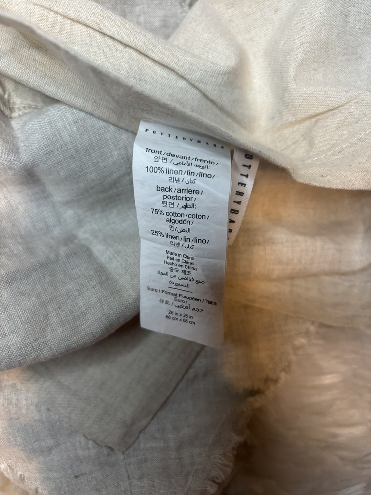 Pottery Barn Belgian Flax Linen Double Flange Sham- Euro Sham-flax Color -26x26 Open box item with No original packaging nor tags No spots/stains Smoke & pet free.