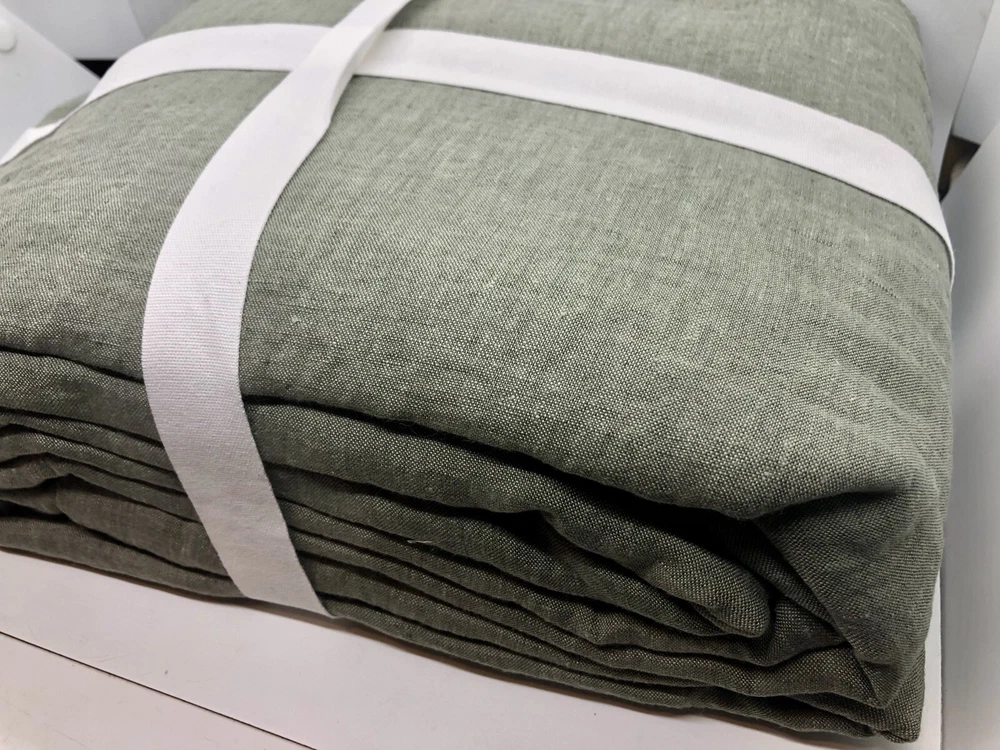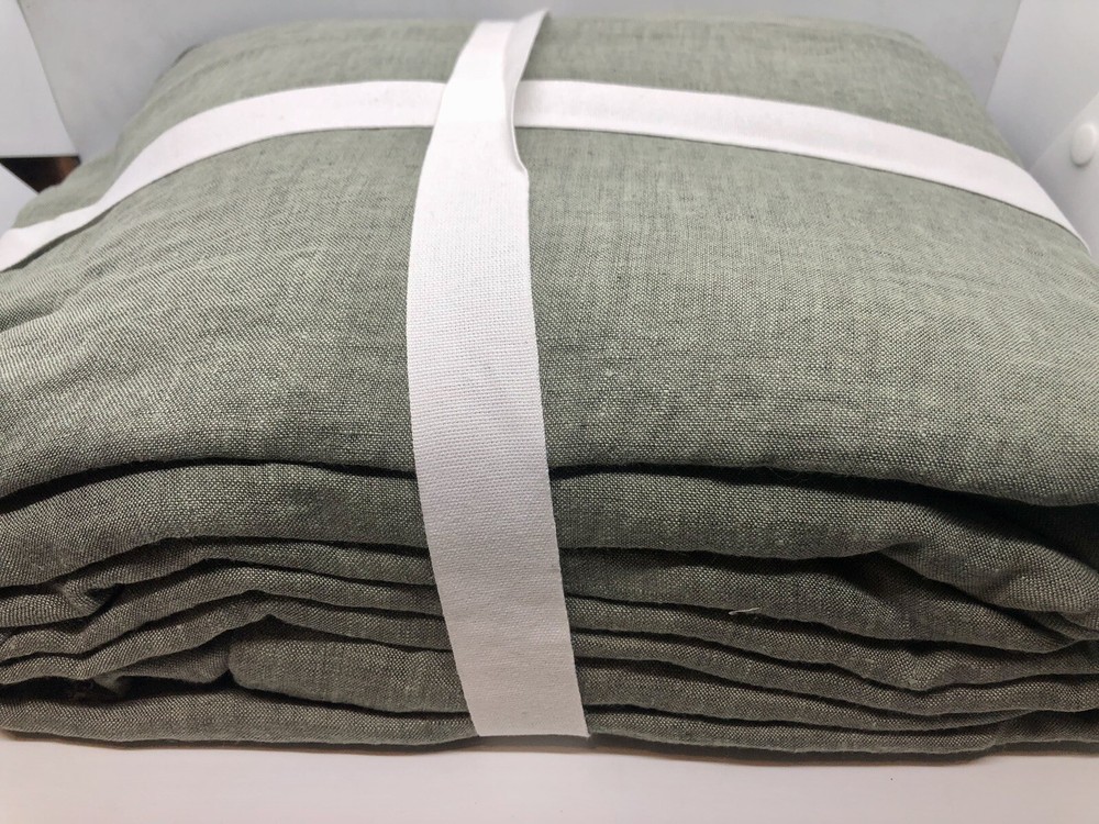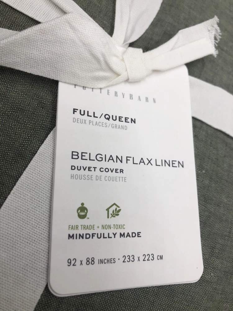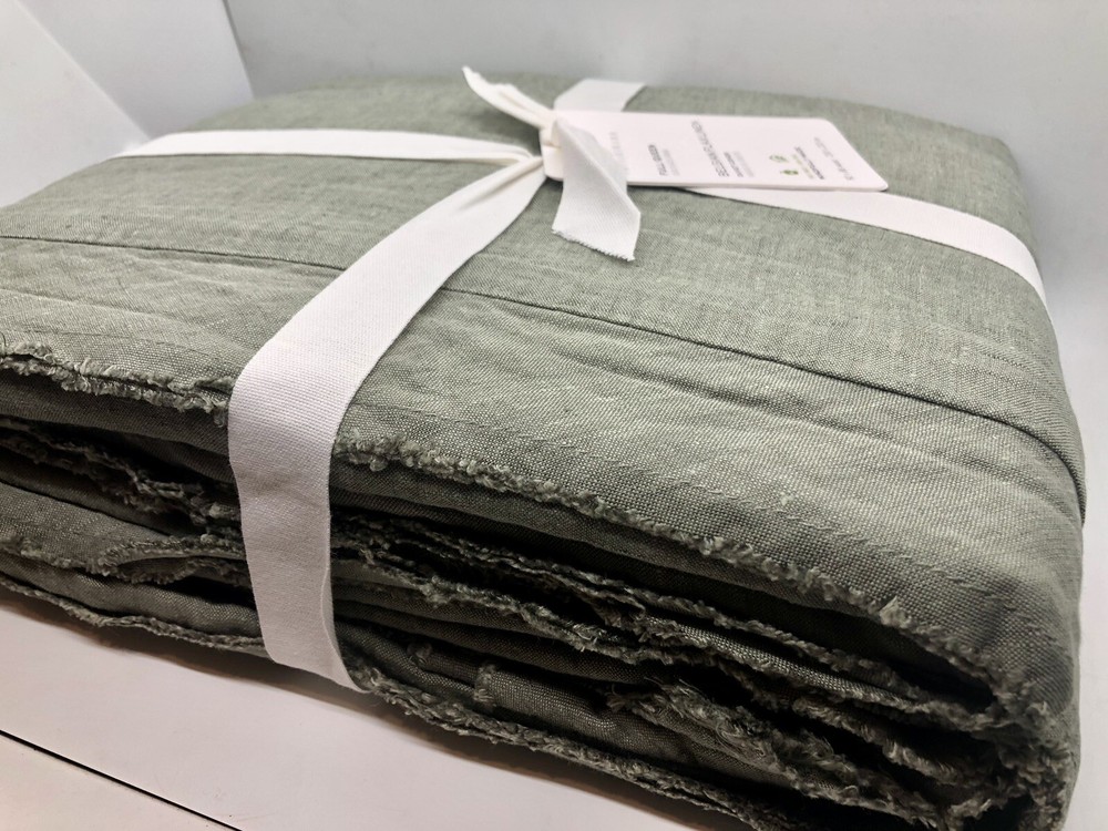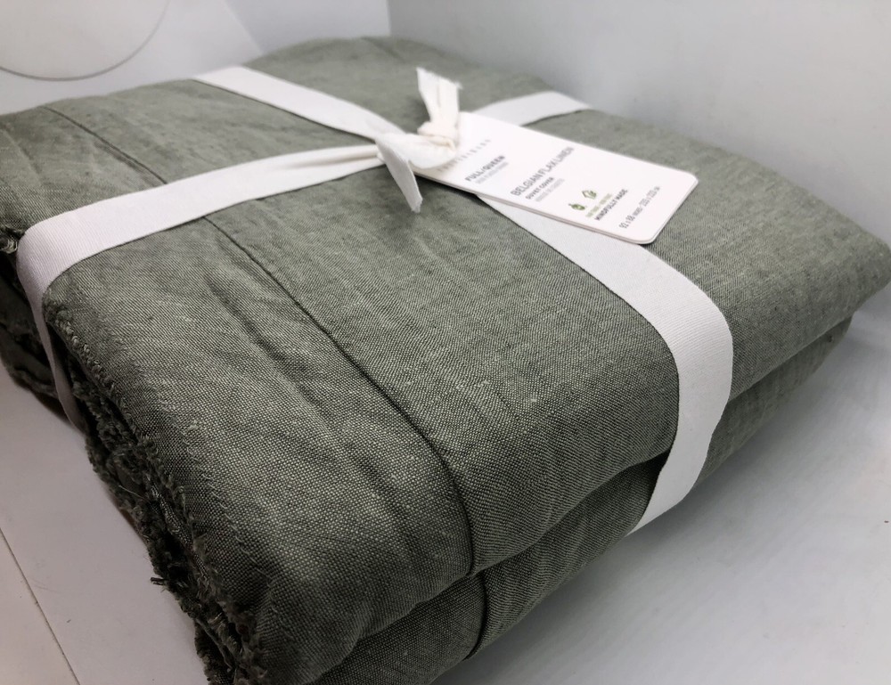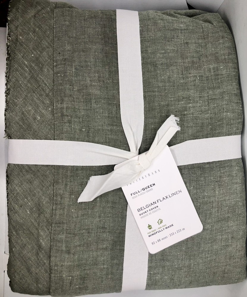 Brand new with tags. Pottery Barn Belgian Flax Linen Duvet Cover Full/Queen Loden Green. Measures 88” x 92”. The edges are intentionally fringed and have a frayed look, off of a flange. See photos for details. Message me with any questions.