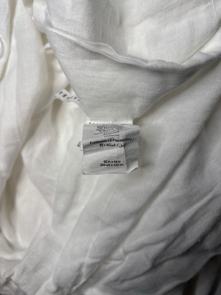 Pottery Barn Belgian Flax Linen Duvet Cover -Queen- White *Read* Duvet had a small hole that has been sewn/repaired. See photos Otherwise In great condition! Tag was placed on the item to easily identify the item only. No spots/ stains Smoke & pet free