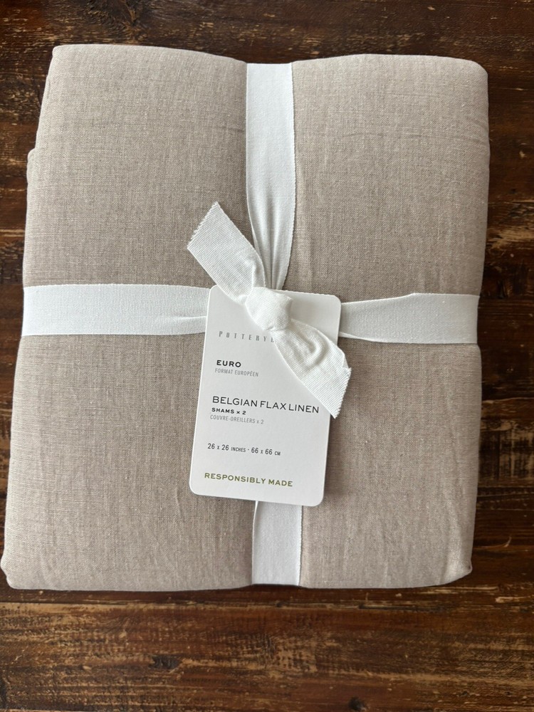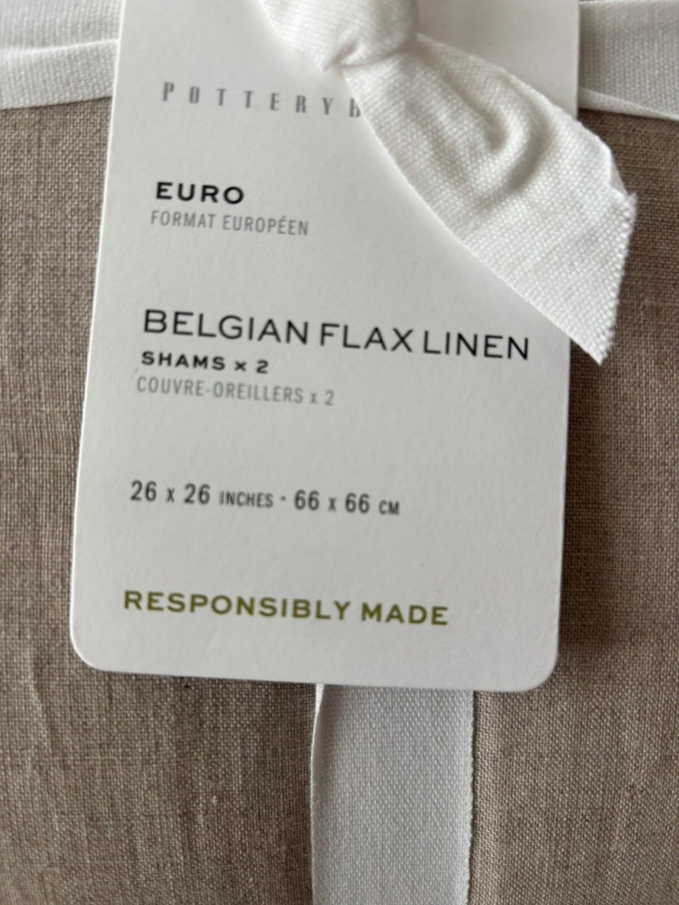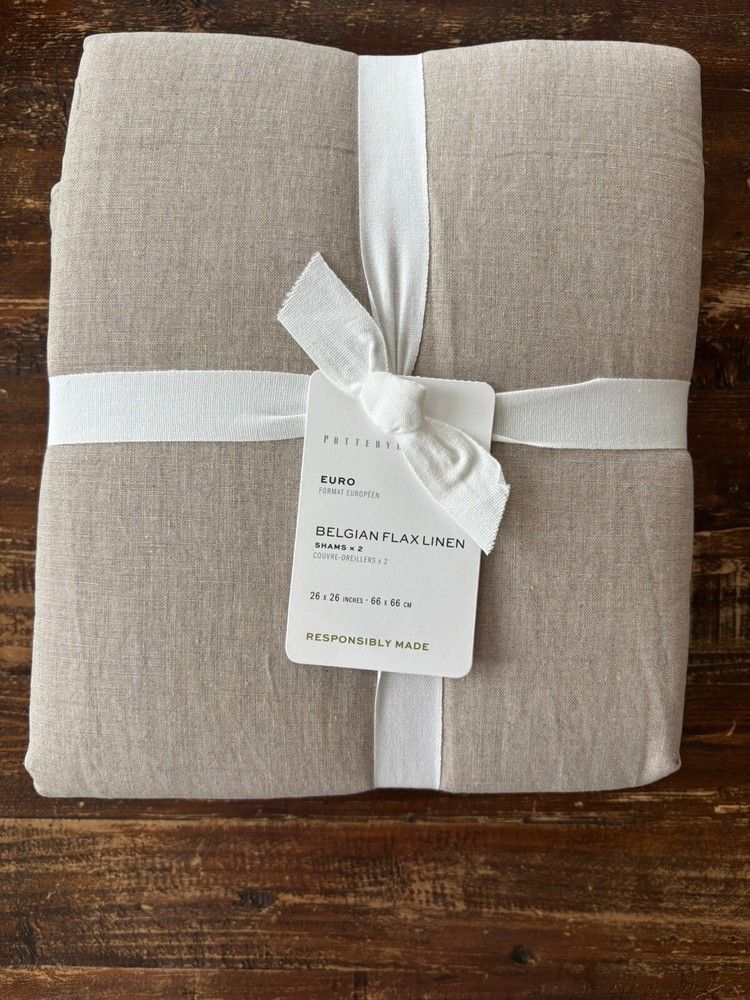 Pottery barn NWT EURO shams x 2 Comforter Belgian flax linen euro pillow shams in the color dark linen. MSRP $170