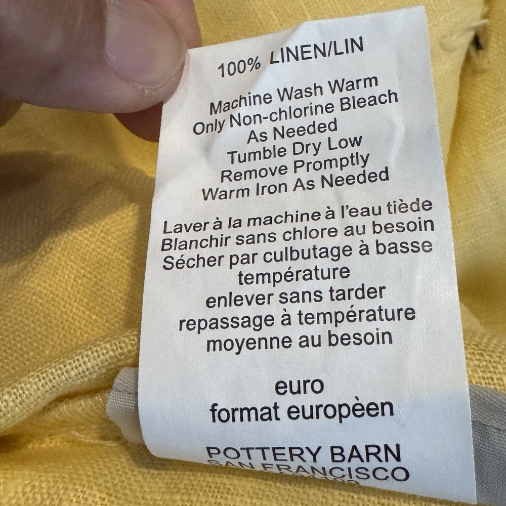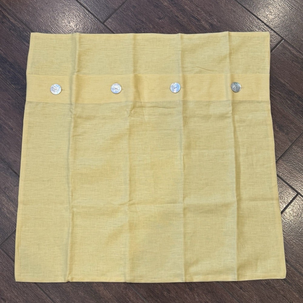 POTTERY BARN Belgian Flax Linen Euro Sham Flax YELLOW 26”x26” Button Close NWOT NEW...