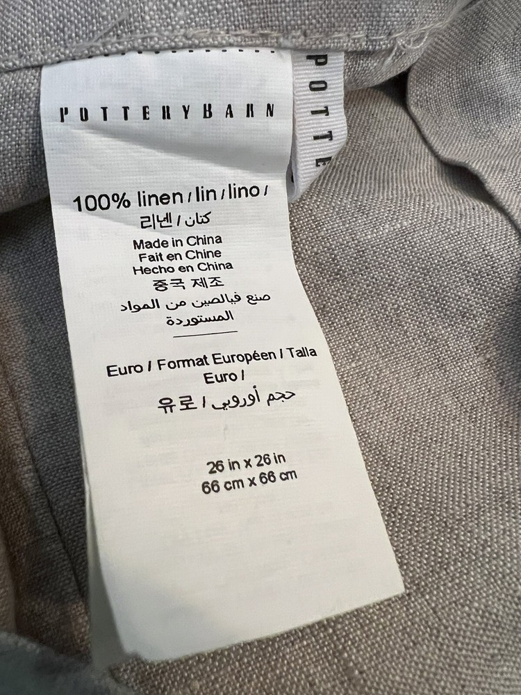 Add a touch of elegance to your bedroom with this Pottery Barn Euro Sham. Made of 100% linen in a beautiful beige color, this sham is perfect for keeping your pillow protected and adding a stylish touch to your decor. Measuring 26 inches in both length and width, The sham features an envelope closure type for easy removal and cleaning. Ideal for use in the bedroom, it is a great addition to any home decor. Sham matches the linen duvet in flax color