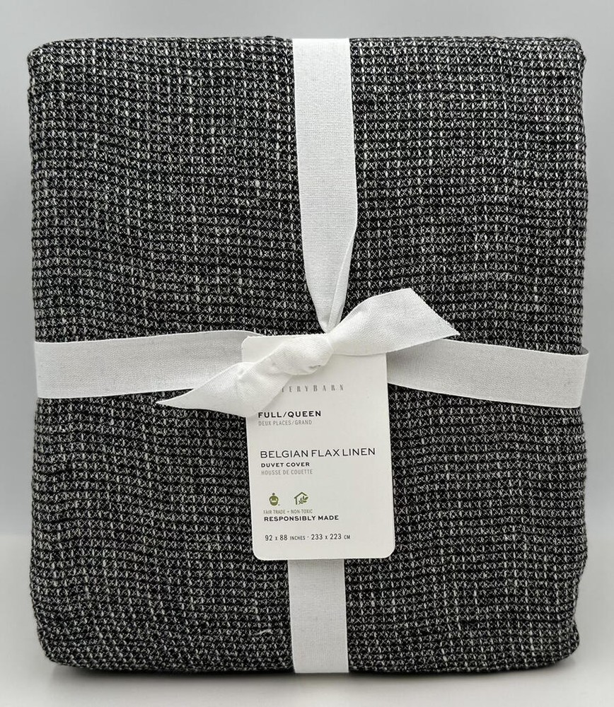 Pottery Barn Belgian Flax Linen FULL / QUEEN Waffle Weave Duvet Cover ~ Ebony Black Details: Front is woven from 100% Belgian linen; reverse is 75% cotton and 25% linen. Breathable Belgian flax linen is ideal for warm or cool temperatures, and its durability lets you love it for years. Designed with a waffle texture. Soft and cool to the touch. Duvet features a hidden button closure with interior ties that keep insert in place. Duvet cover and insert sold separately. Shams sold in Set of 2 or Set of 3. Pre-washed for a super soft hand feel. Machine wash. Imported. Size: Duvet Cover: Full / Queen: 88" l x 92" w Care: Linen will get softer with every wash. Machine wash in cold water separately on gentle cycle. Use only non-chlorine bleach, if needed. Line or tumble dry on a low temperature. Please read before you purchase: We take pride in our business, and we strive to do our best. We purchase brand new items or gently used items and we do our best to give accurate descriptions and photos. If you have any questions about an item, please contact us through eBay before you purchase. We try our best to resolve any issues as fast as possible. Please contact us right away if there are any issues with your purchase. Returns are accepted but the item must be returned within 30 days of the original delivery date. When we receive the returned item, inspect it, and it is found to be in the same condition that we shipped it in (brand new, unused, in the original packaging with tag attached) then we will request a cancellation of the transaction through ebay. Once the item is cancelled, your refund will be given. Refunds are less original cost to ship the product (this includes free shipping items) unless the mistake was made by the seller. Returns that have any signs of use or handling will NOT be accepted and no refund will be given. We are not responsible for pictures shown incorrectly on your monitor. No refunds will be given for incorrect fit, color, or buyer’s remorse. Thank you! Feedback: We strive to give you the best service. If you have any issues regarding your item, please contact us right away. Customer satisfaction is our priority. See my other listings for more great items! We accept MasterCard, Visa, Discover and American Express, PayPal through eBay's managed payment service. We can only ship to confirmed addresses provided at the time of sale ...so please make sure it is correct. We cannot modify the address after you have purchased the item. We provide fast shipping! Your item will be shipped within 2-5 business days via UPS Ground or USPS priority mail. UPS can NOT deliver to PO boxes, so please provide us with a physical street address. Once your item is shipped you will receive an email with your tracking number. We are HAPPY to combine shipping on items that can be combined. We cannot offer Free Shipping to HI, PR and AK. Please email us for shipping rates to HI, PR and AK. Signature at delivery may be required for some items over $250. International bidders: We do offer SOME of our auctions to international buyers. Shipping charges in the listing only cover the US shipping costs. Extra shipping charges are required for international destinations. The customer is also responsible for any custom charges incurred. We will NOT mark international packages as a GIFT....so please do not ask. Thank you! txzj pxzj131 txzj-11 txzj39 txzj115