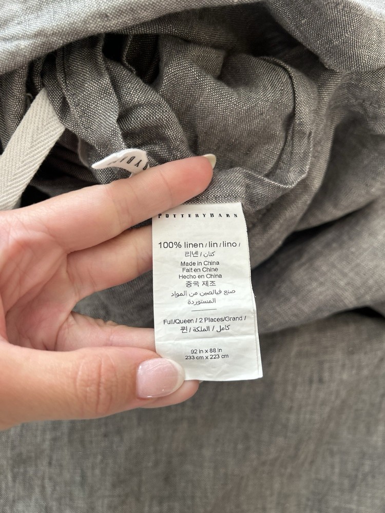 Pottery Barn Belgian Flax Linen FULL/QUEEN Duvet Cover Heathered Charcoal USED Pre-owned, no tears/stains/holes - Size full/queen in the color heathered charcoal...