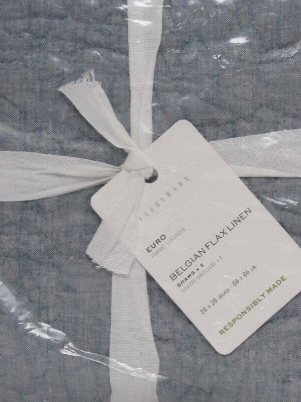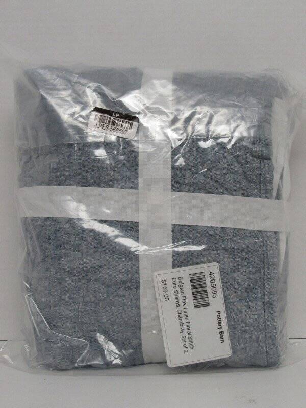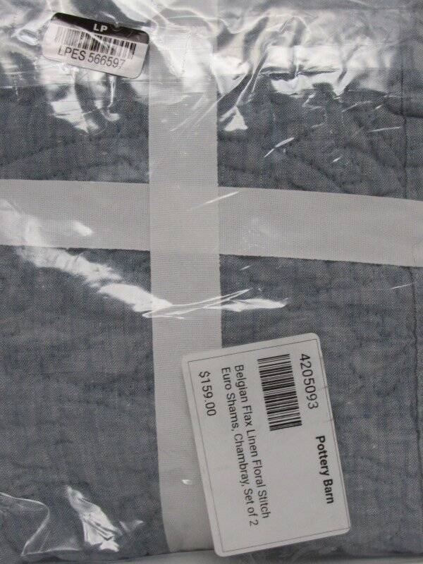 Pottery Barn Belgian Flax Linen Floral Stitch Quilted Euro Shams, Chambray NWT Pottery Barn Belgian Flax Linen Floral Stitch Quilted Euro Shams, New with tags. Set of 2 Euro shams----26" x 26"----66 x 66 cm Color--Chambray With the look and feel of a traditional quilt, our linen bedding is stitched in an intricate floral pattern. Beautifully woven from the world's finest Belgian flax, it's prewashed for incredible softness that only gets better with time. We love how this breathable, naturally insulating fabric keeps you cool in warm weather and cozy when the temperature dips. PRODUCT DETAILS CONSTRUCTION Linen woven from 100% Belgian flax; reverse to same. 250 gsm; 100% cotton fill. Quilted sham features an overlap closure. Sham and inserts are sold separately. Shams sold in Set of 2 or 3. OEKO-TEX® STANDARD 100: tested for 1000+ harmful substances. 14.HUS.42449 HOHENSTEIN HTTI. Imported. CARE Machine wash in cold water separately on gentle cycle. Use only non-chlorine bleach, if needed. Line or tumble dry on a low temperature. Warm iron as needed. See my other listings for more great items! Please read our return policy before you purchase: We take pride in our business, and we strive to do our best. We purchase brand new items and we do our best to give accurate descriptions and photos. If you have any questions about an item, please contact us through eBay prior to your purchase. We try our best to resolve any issues as fast as possible. Please contact us right away if there are any issues with your purchase. Item must be returned within 30 days of the original delivery date. When we receive the returned item, inspect it, and it is found to be in the same condition that we shipped it in (brand new, unused and in the original packaging) You will immediately receive your refund. Returns that have any signs of use or handling will NOT be accepted and no refund will be given. Thank you! Please read our return policy before you purchase: We take pride in our business, and we strive to do our best. We purchase brand new items and we do our best to give accurate descriptions and photos. If you have any questions about an item, please contact us through eBay prior to your purchase. We try our best to resolve any issues as fast as possible. Please contact us right away if there are any issues with your purchase. Item must be returned within 30 days of the original delivery date. When we receive the returned item, inspect it, and it is found to be in the same condition that we shipped it in (brand new, unused and in the original packaging) You will immediately receive your refund. Returns that have any signs of use or handling will NOT be accepted and no refund will be given. Thank you! Feedback: We strive to give you the best service. If you have any issues regarding your item, please contact us right away . Customer satisfaction is our priority. We accept MasterCard, Visa, Discover, Paypal and American Express, securely and conveniently via eBay Managed Payments. We will use the address listed on your eBay account...so please make sure it is correct. WE WILL SHIP TO CONFIRMED EBAY ADDRESSES ONLY!! DO NOT send money via PayPal if your address is not confirmed...we will not be able to accept it. We provide fast shipping! Your item will be shipped within 1-3 business days via UPS, USPS priority mail or Fed-Ex. We reserve the right to choose shipping company. They can NOT deliver to PO boxes, so please provide us with a physical street address. Once your item is shipped you will receive an email with your tracking number. We are HAPPY to combine shipping on items that can be combined. Please email us for shipping rates to HI and AK. Signature at delivery is required for all items over $250. All items must also be shipped to the address on your eBay account.. We are enrolled in eBay's Global Shipping Program . Only countries approved in eBay's Global shipping can receive deliveries from us. Other Items Feedback Contact txzj pxzj432 txzj-11 txzj-4 txzj1 txzj115