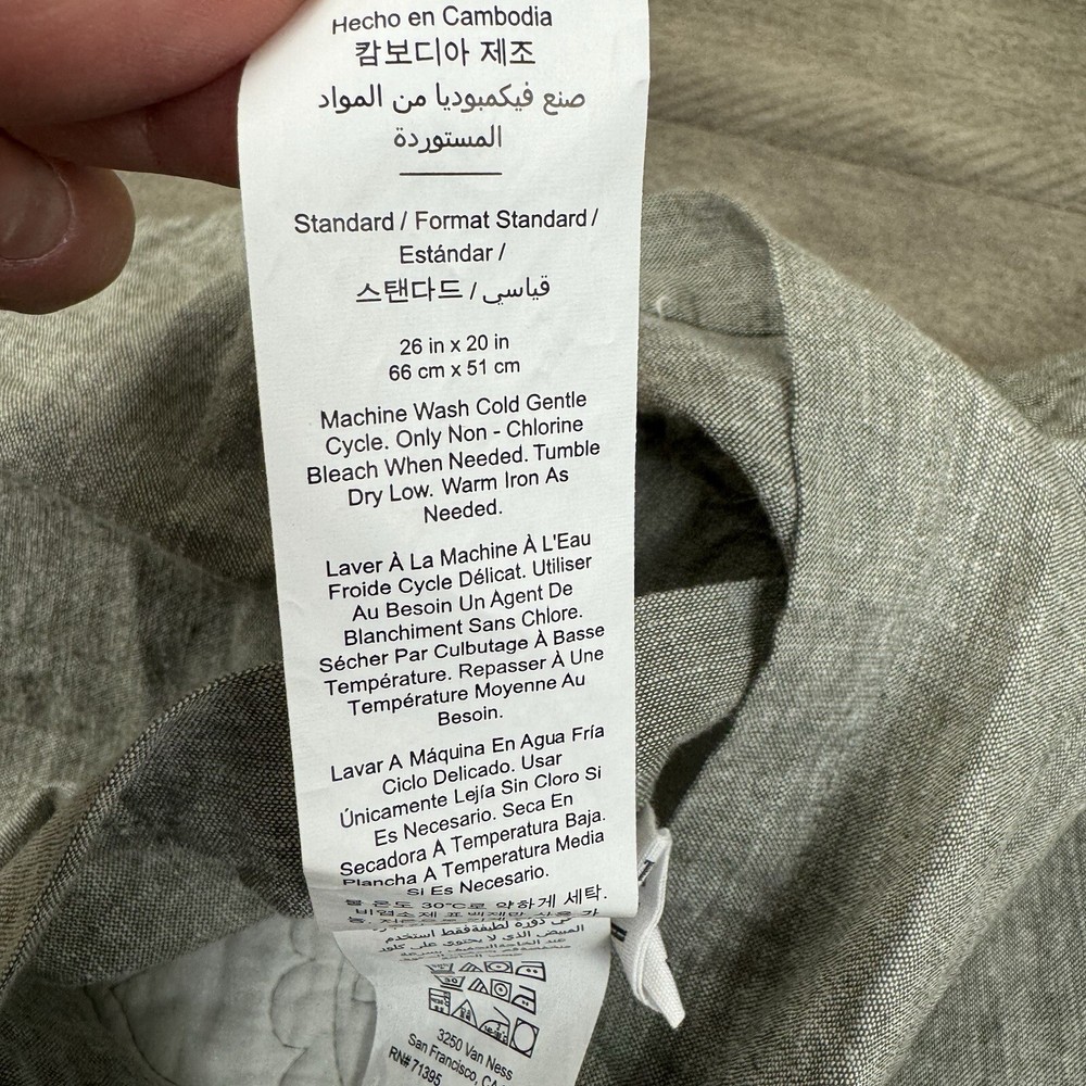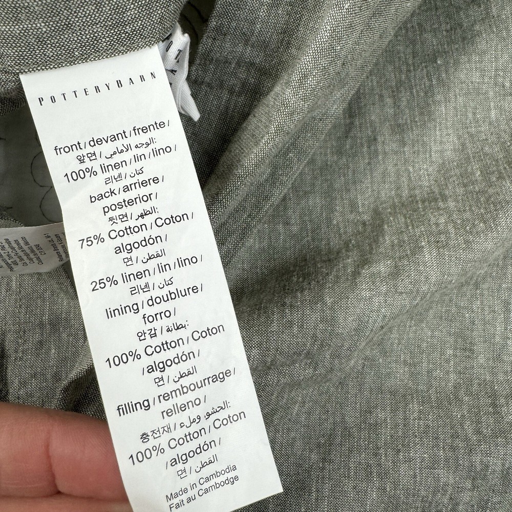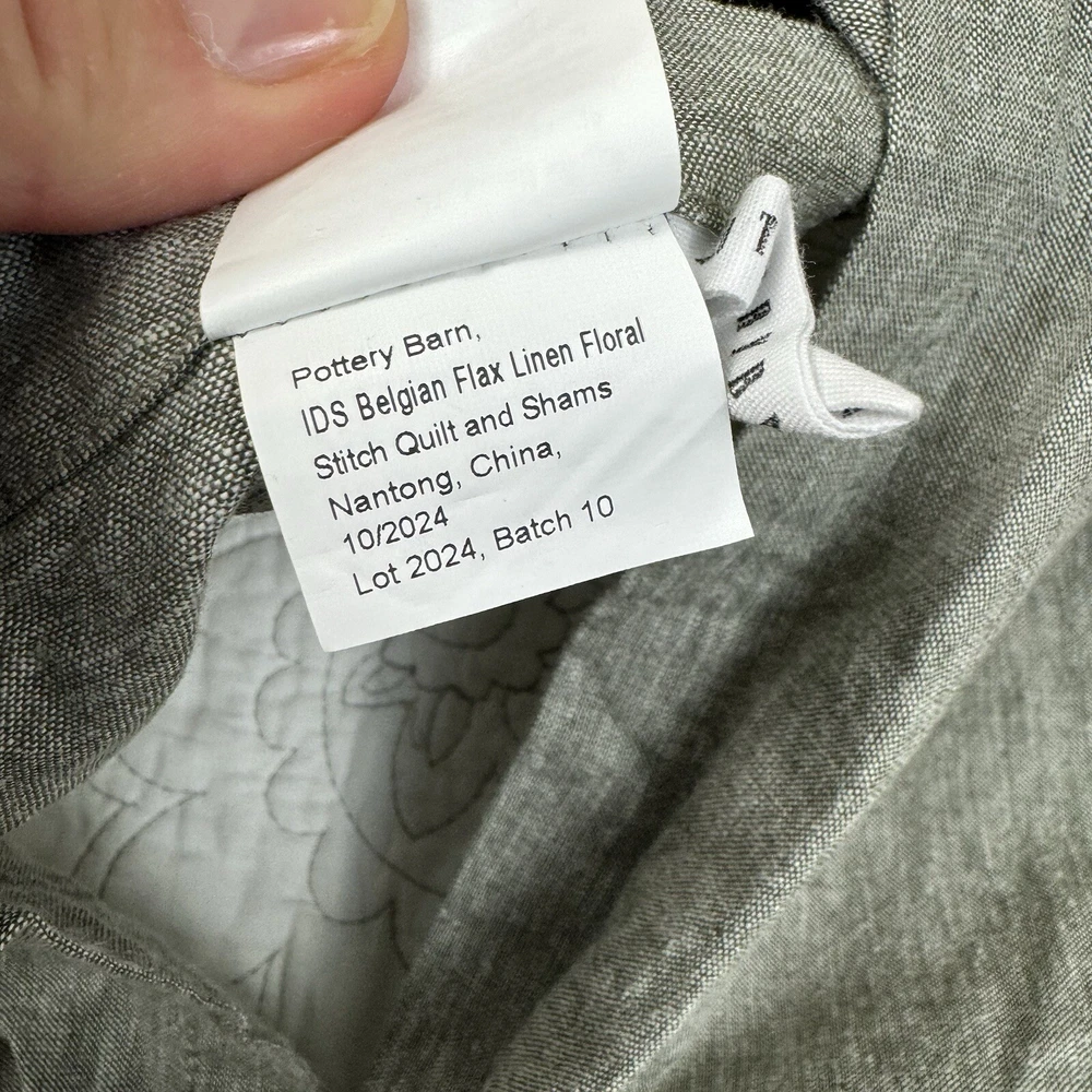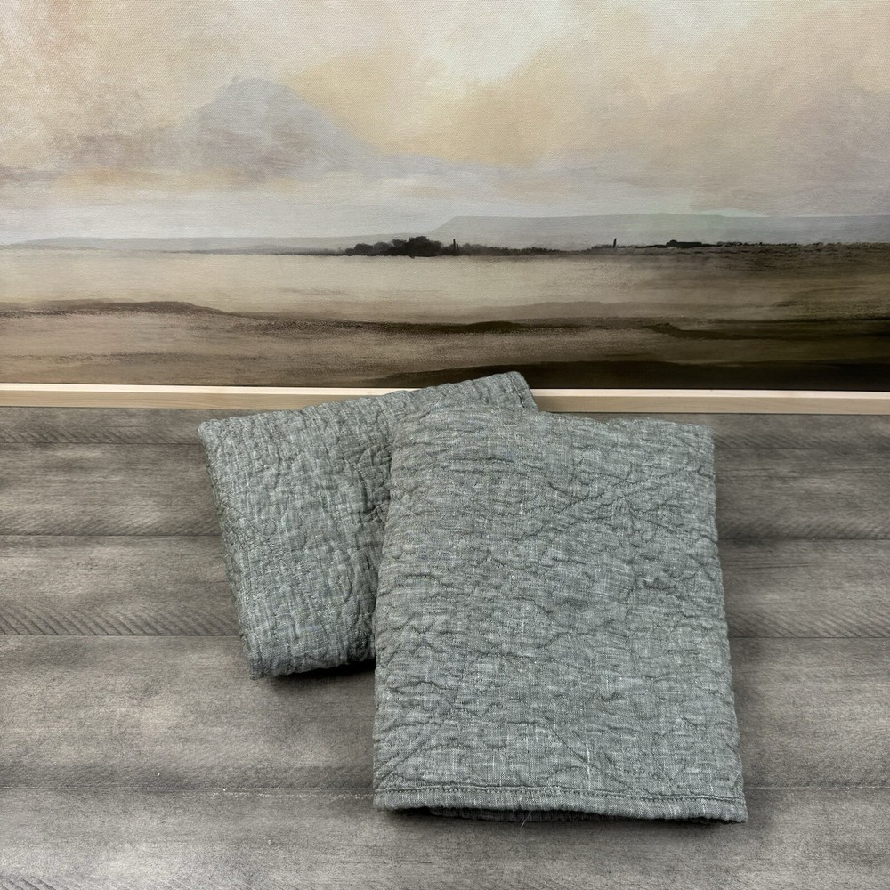 Pottery Barn Belgian Flax Linen Floral Stitch Quilted Shams Set/2 Dark Forest OB New without tags item / open box - item ships without manufacturer packaging There is a bit of wrinkling throughout from handling Please note, external warning labels / tags have been removed This listing is for a set of two shams Dimensions: 26”x20”