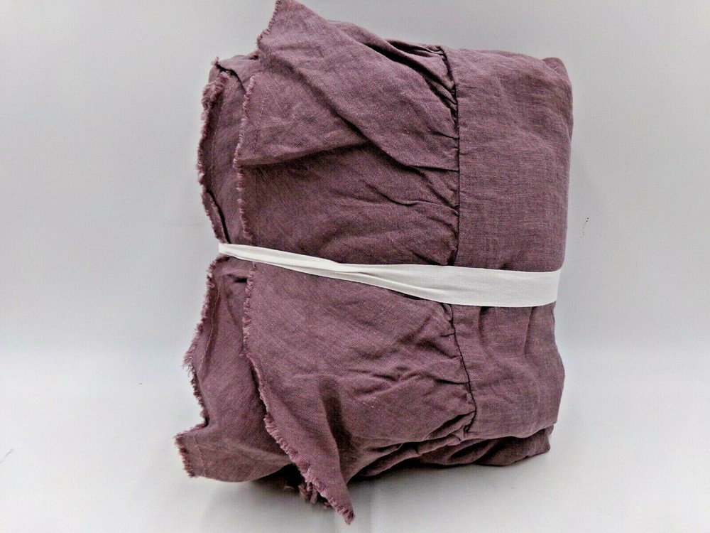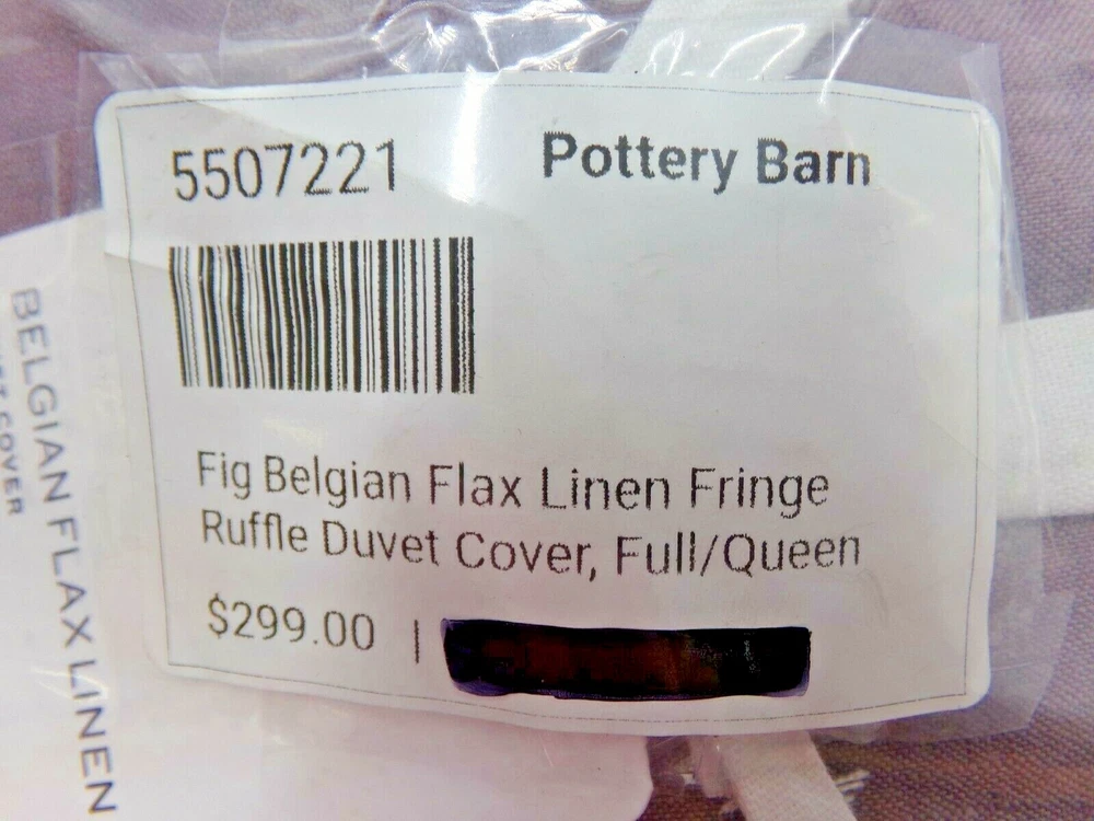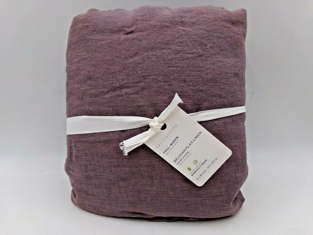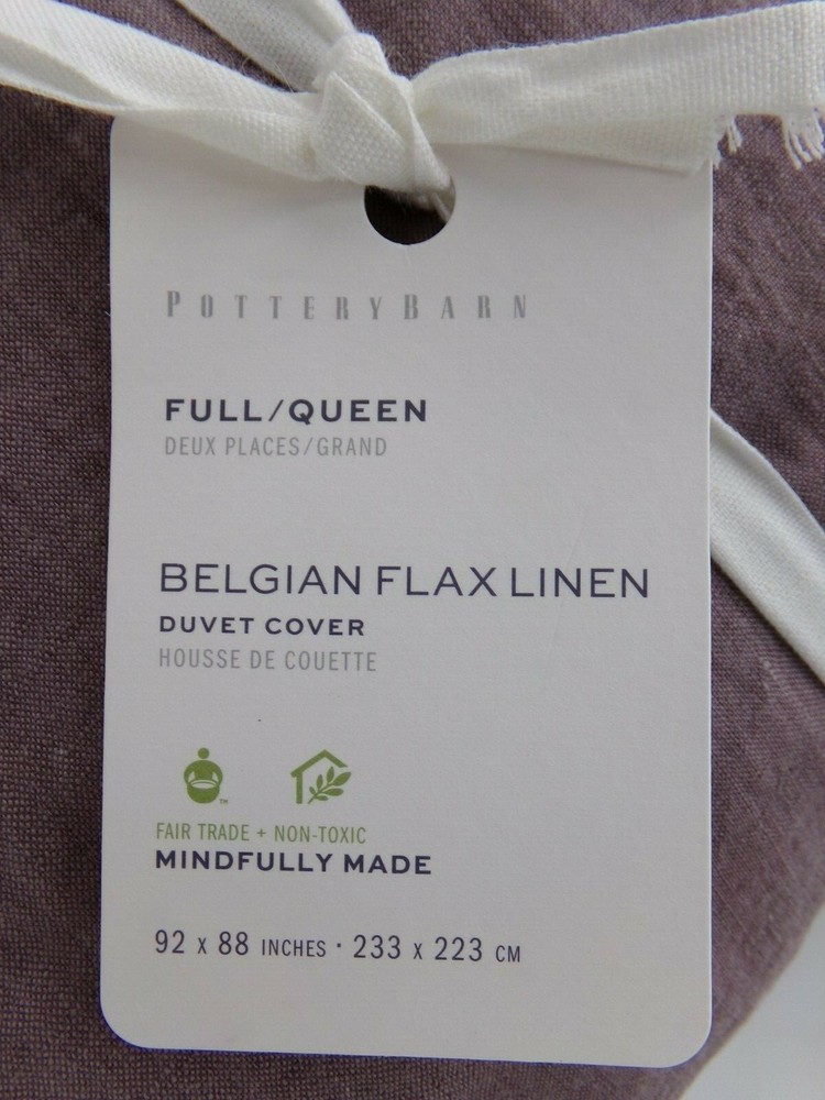Pottery Barn Belgian Flax Linen Fringe Flange Duvet Cover Item is brand new! Auction includes: 1 Duvet Cover Linen woven from 100% Belgian flax; reverse is 55% linen and 45% cotton blend. Breathable Belgian flax linen is ideal for warm or cool temperatures, and its durability lets you love it for years. Soft and cool to the touch. Designed with romantic ruffle edges. Duvet features a hidden button closure with inner ties that keep insert in place; Pre-washed for a super soft hand feel. Machine wash. Imported. DIMENSIONS Duvet Full/Queen: 88" l x 92" w CARE AND MAINTENANCE Linen will get softer with every wash. Machine wash in cold water separately on gentle cycle. Use only non-chlorine bleach, if needed. Line or tumble dry on a low temperature.