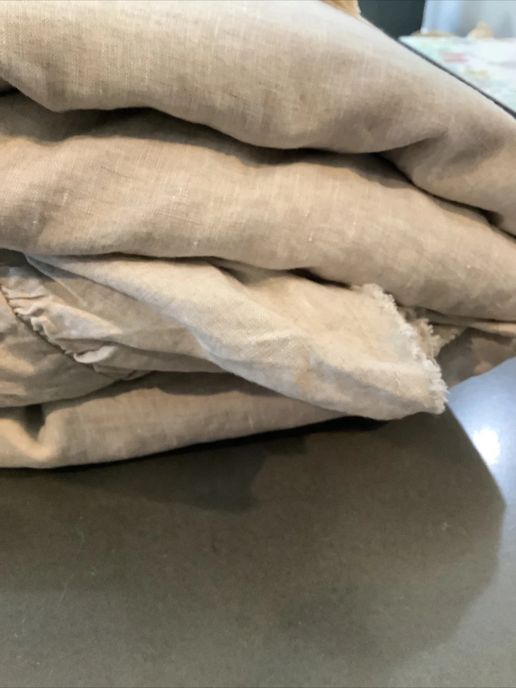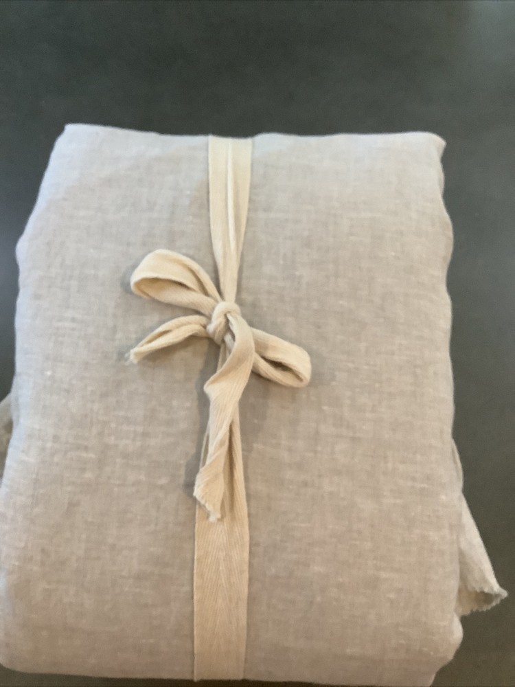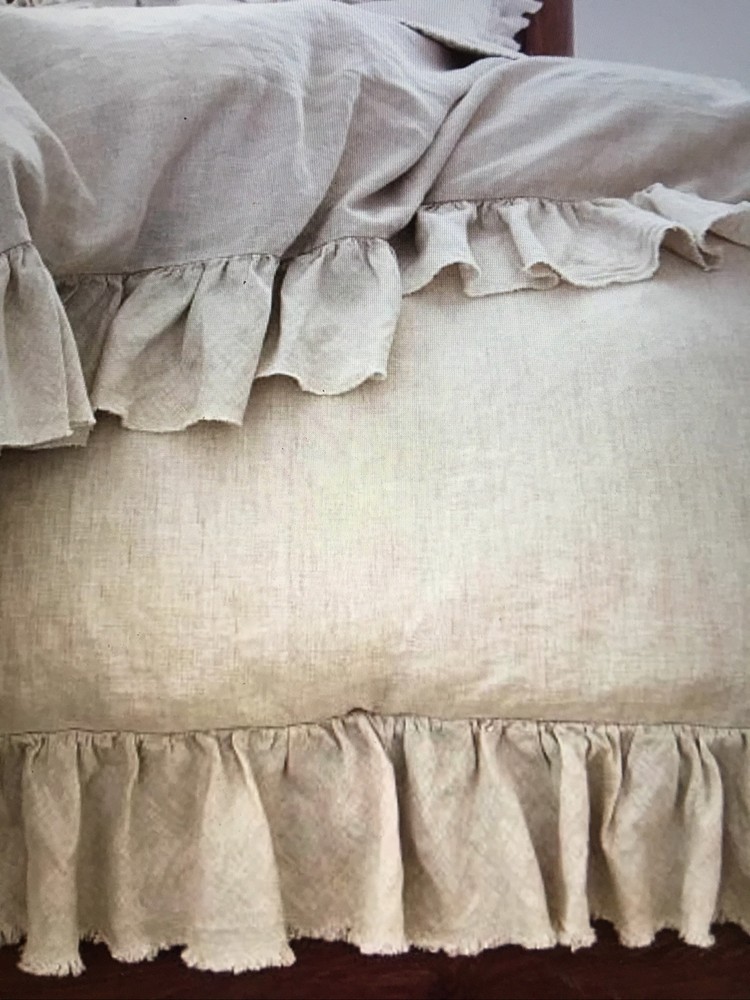 Transform your bedroom into a serene retreat with this exquisite Pottery Barn duvet cover. The full/queen-size cover is made from top-quality Belgian flax linen that is both soft and durable. The charming ruffle design adds texture and depth to your bedding, while the flax color complements any decor scheme. This brand-new duvet cover comes with tags and features fringed edging that adds a touch of elegance to your room. Perfect for a peaceful night's sleep, this duvet cover is a must-have for any bedroom.