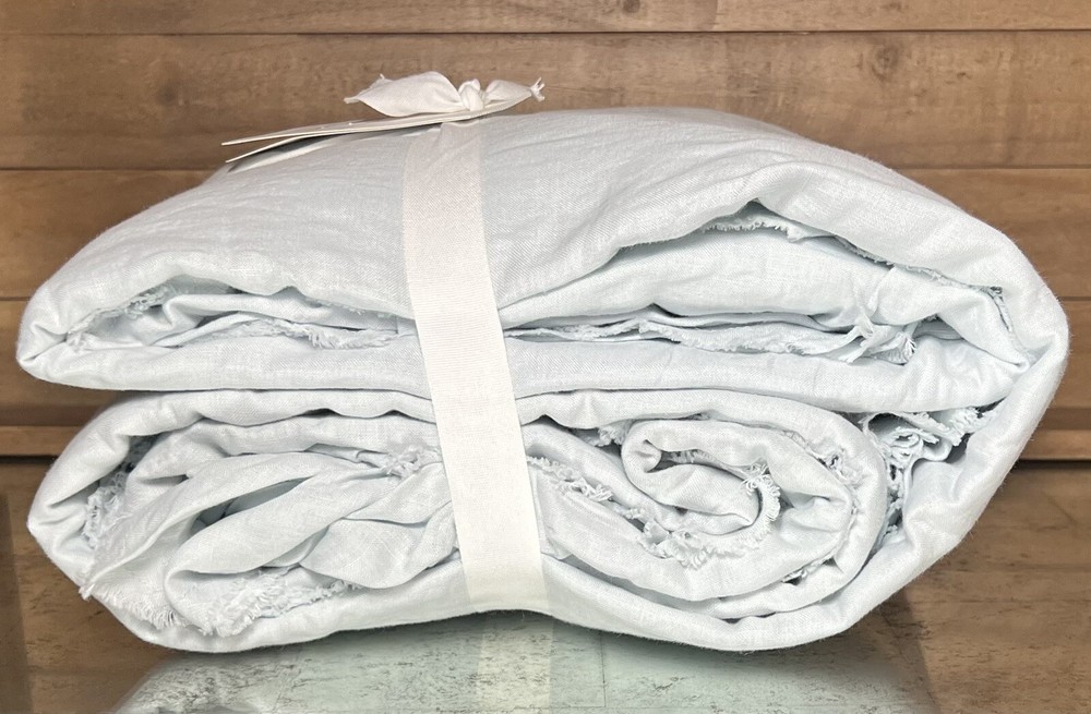 romantic ruffled bedding with fringe detail and raw edges is tailored from the world’s finest Belgian flax. Prewashed for softness—that only gets softer with each wash—it’s also naturally insulating, keeping you warm when it’s cold and cool when it’s warm. Material: Linen woven from 100% Belgian flax; reverse is a blend of 55% linen and 45% cotton.
