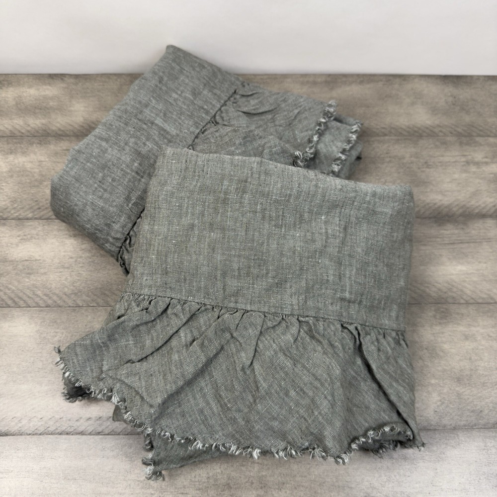 Pottery Barn Belgian Flax Linen Fringe Ruffle Standard Shams Set/2 Dark Forest Gently used shams / have been washed Please note, internal tags have been cut Dimensions: 26”x20”