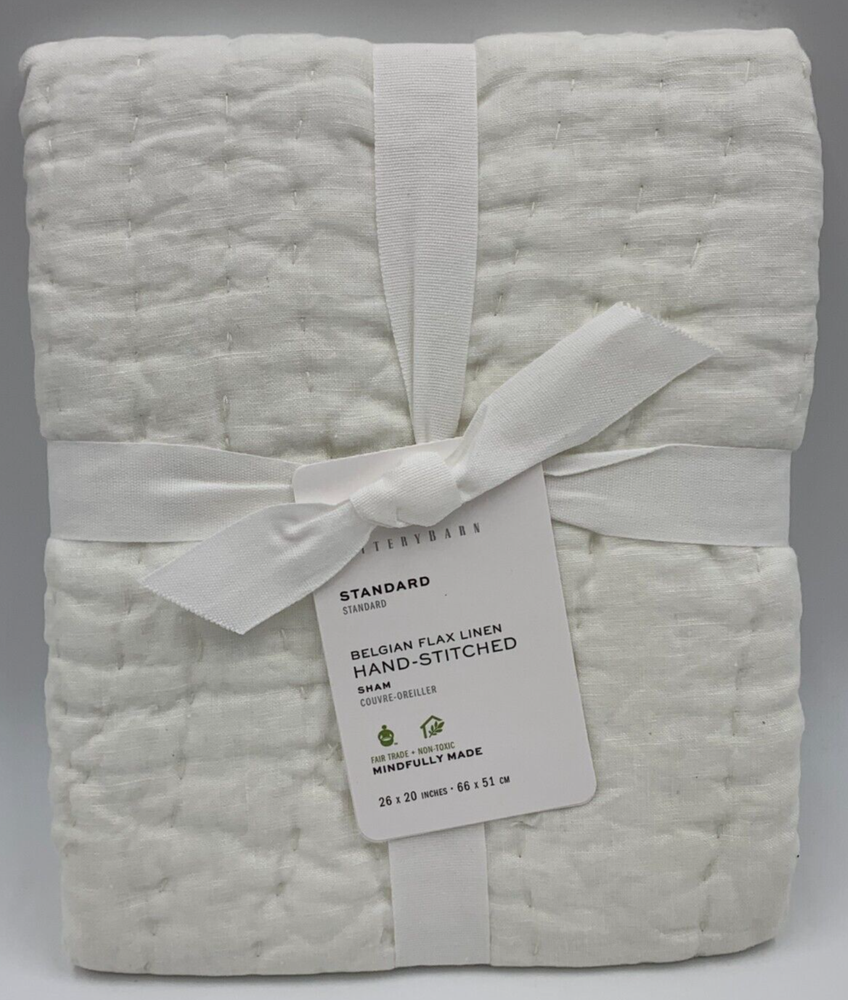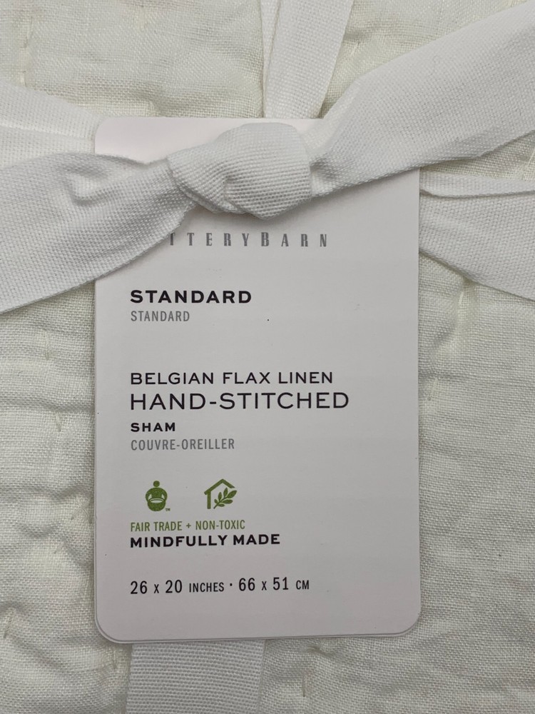 Pottery Barn Belgian Flax Linen Hand Stitched Sham Standard Classic White #H51 Item is brand new! Auction includes: 1 Sham Woven from the world’s finest Belgian flax, linen bedding is prewashed for incredible softness—and only gets better with time. Lightly textured and cool to the touch, this natural-fiber fabric is prized for its durability, breathability and lived-in look. Belgian flax linen bedding is proudly made at a Fair Trade Certified™ factory. Linen woven from 100% Belgian flax. Prewashed for a supersoft hand feel. Ideal for warm or cool temperatures. Fair Trade Certified™. The purchase of this product helps ensure fair and safe labor practices, improve livelihoods, and empower workers to invest in their communities. STANDARD 100 by OEKO-TEX® certified. Tested in an independent lab and verified to be safe from over 350 harmful substances. Sham features an envelope closure. Machine wash. Imported. DIMENSIONS Standard: 20" h x 26" w Euro: 26" sq King: 20" h x 36" w Flange: 0.5" CARE AND MAINTENANCE Machine wash in cold water; gentle cycle, with like colors. Use only non-chlorine bleach when needed. Tumble dry on low heat; remove promptly. Warm iron as needed.
