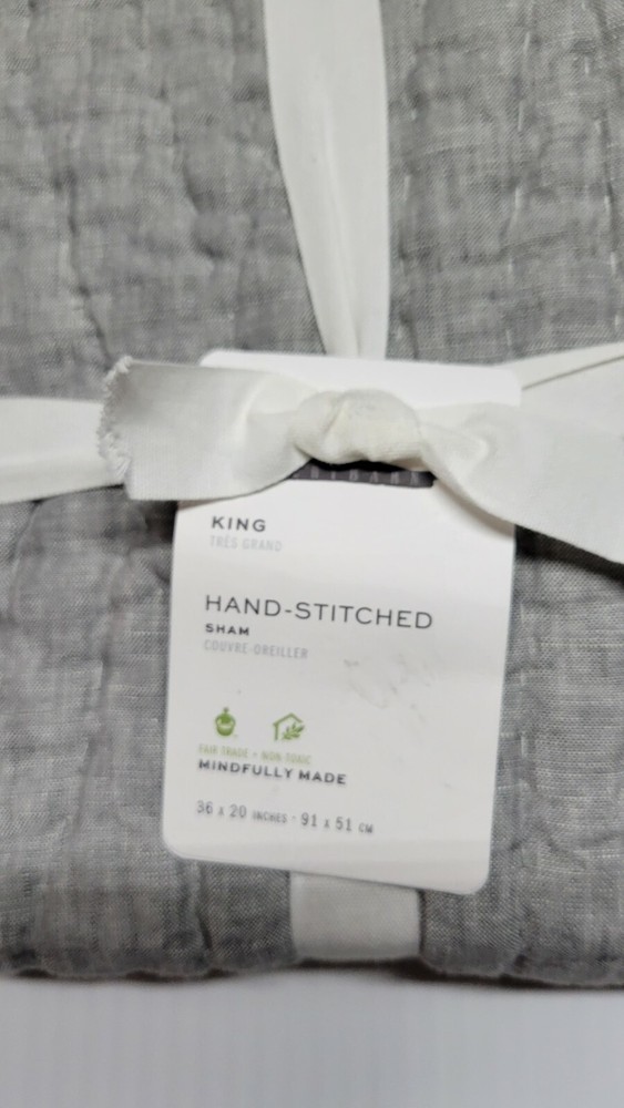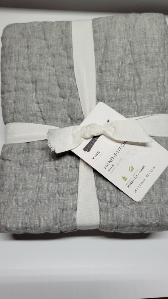 Elevate your bedroom with the Pottery Barn Belgian Flax Linen Hand Stitched Sham in a sleek gray colorstone. This modern king-sized pillow sham features a luxurious linen front with a quilted design and machine washable fabric for easy care. The sham is adorned with hand stitching and an envelope closure for a touch of elegance. Ideal for adults, this sham is made of a high-quality linen blend and measures 20 inches in length and 36 inches in width. Perfect for adding a pop of style to your bedding collection, this Pottery Barn sham is sure to impress.