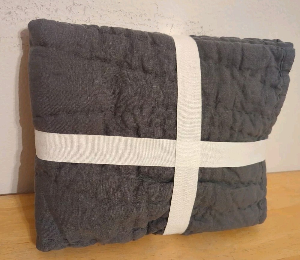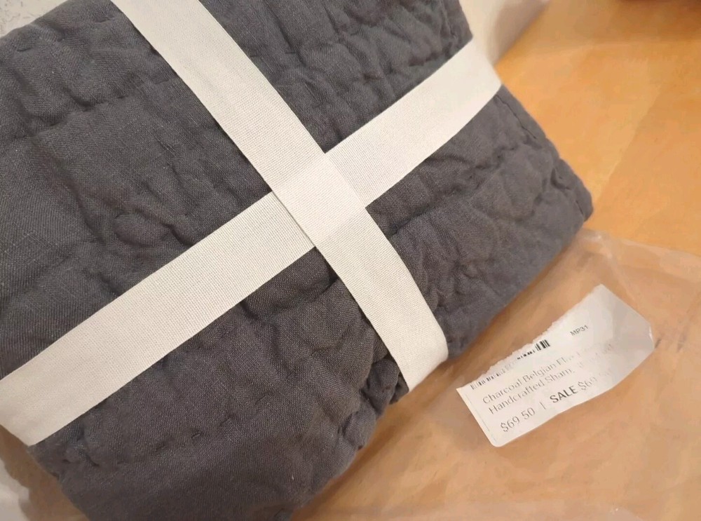Add a touch of elegance to your bedroom with this beautiful handcrafted Pottery Barn standard pillow sham. The charcoal color and quilted features make it a perfect addition to any bedding set. Made of 100% linen, this sham is both comfortable and durable. It's easy to care for with machine wash instructions, and its closure type is no closure. Perfect for both teens and adults, this Pottery Barn Belgian flax linen sham is ideal for any bedroom.