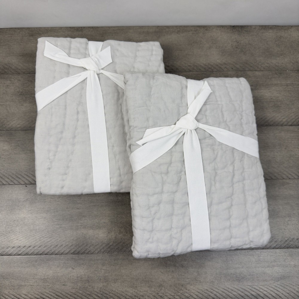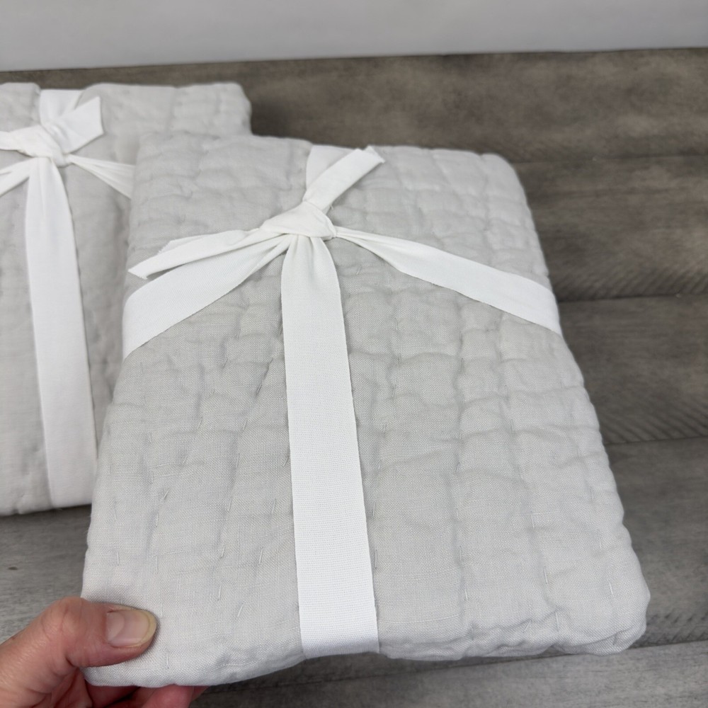Pottery Barn Belgian Flax Linen Handcrafted Quilted Standard Shams Soft Gray New without tags item / open box - item ships without manufacturer packaging Set of two shams Dimensions: 20”x26”